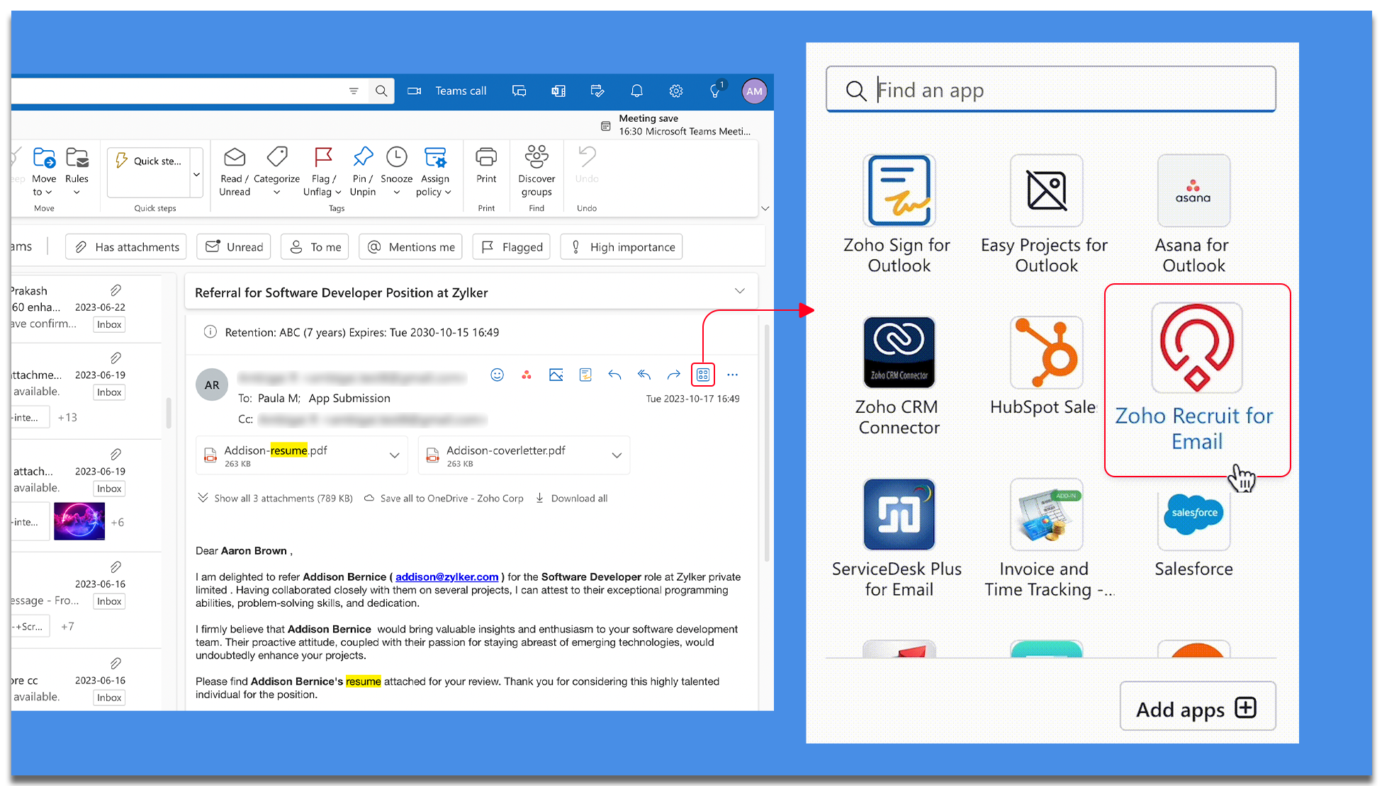 Zoho Recruit | Zoho Recruit Add-in for Microsoft Outlook