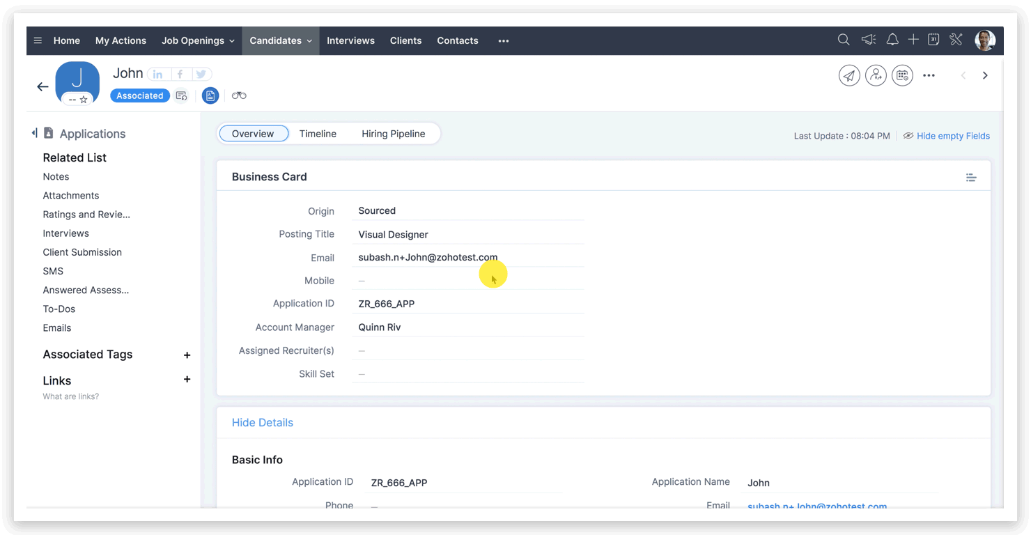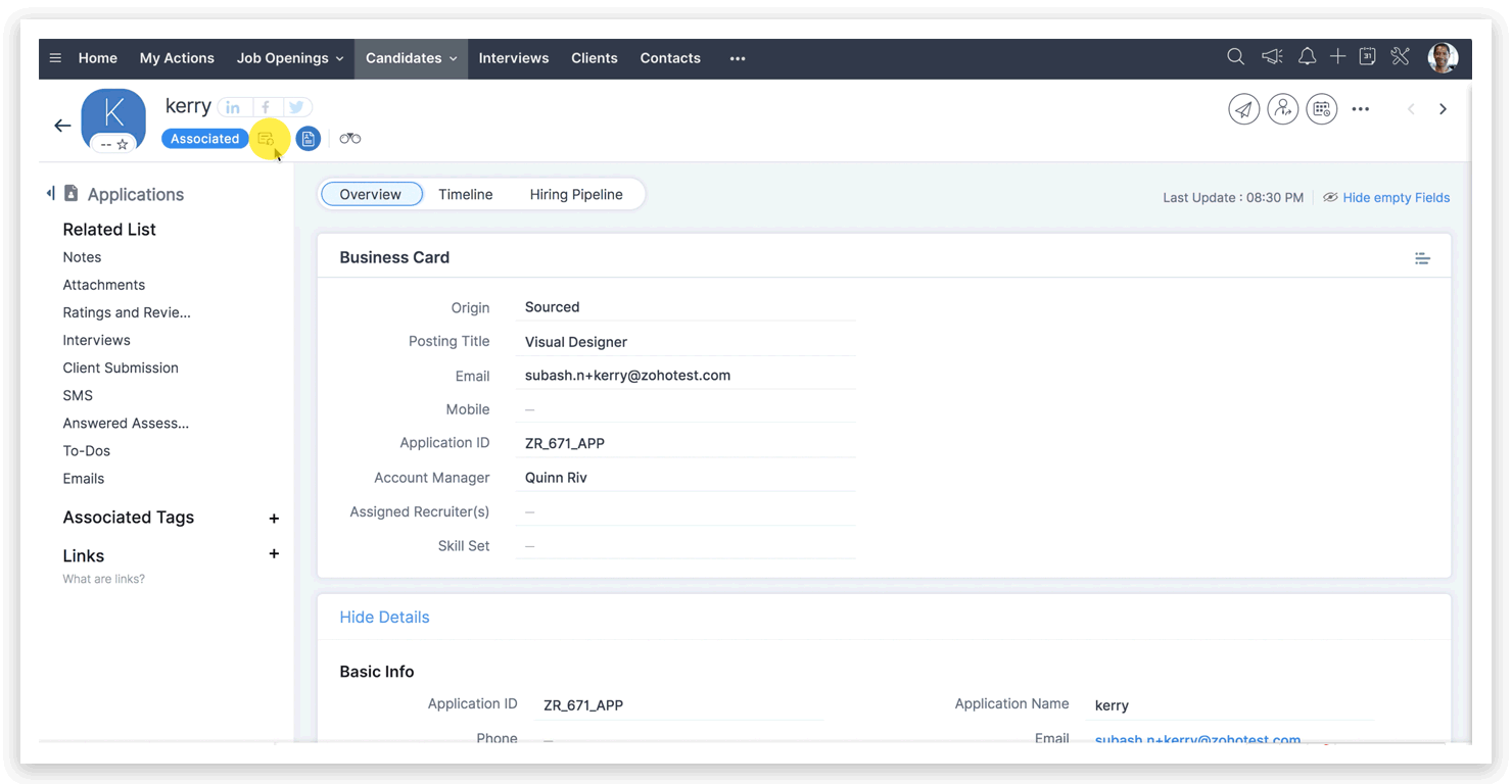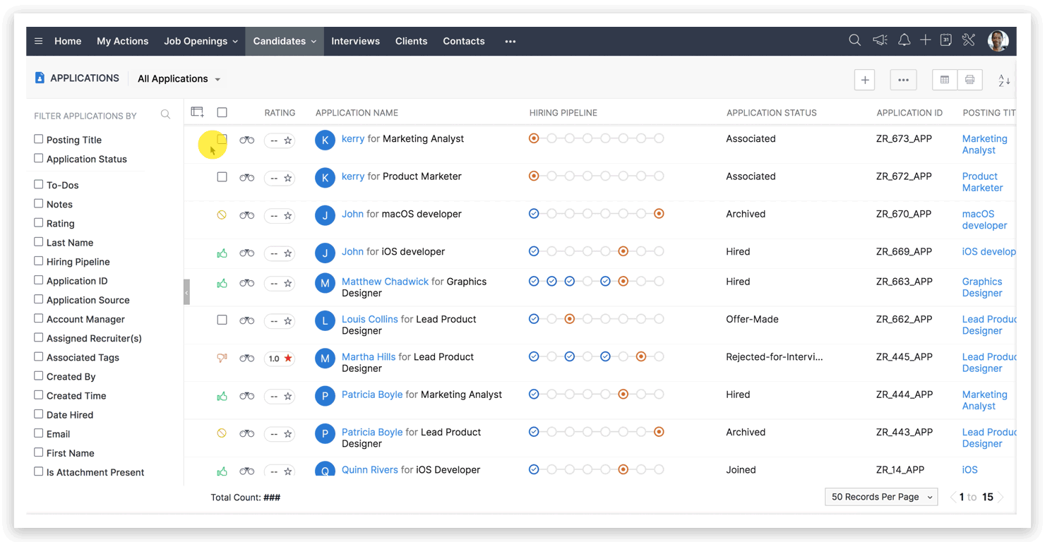 Here are a few scenarios to help you understand candidate stages and how they are associated with application statuses in Zoho Recruit.