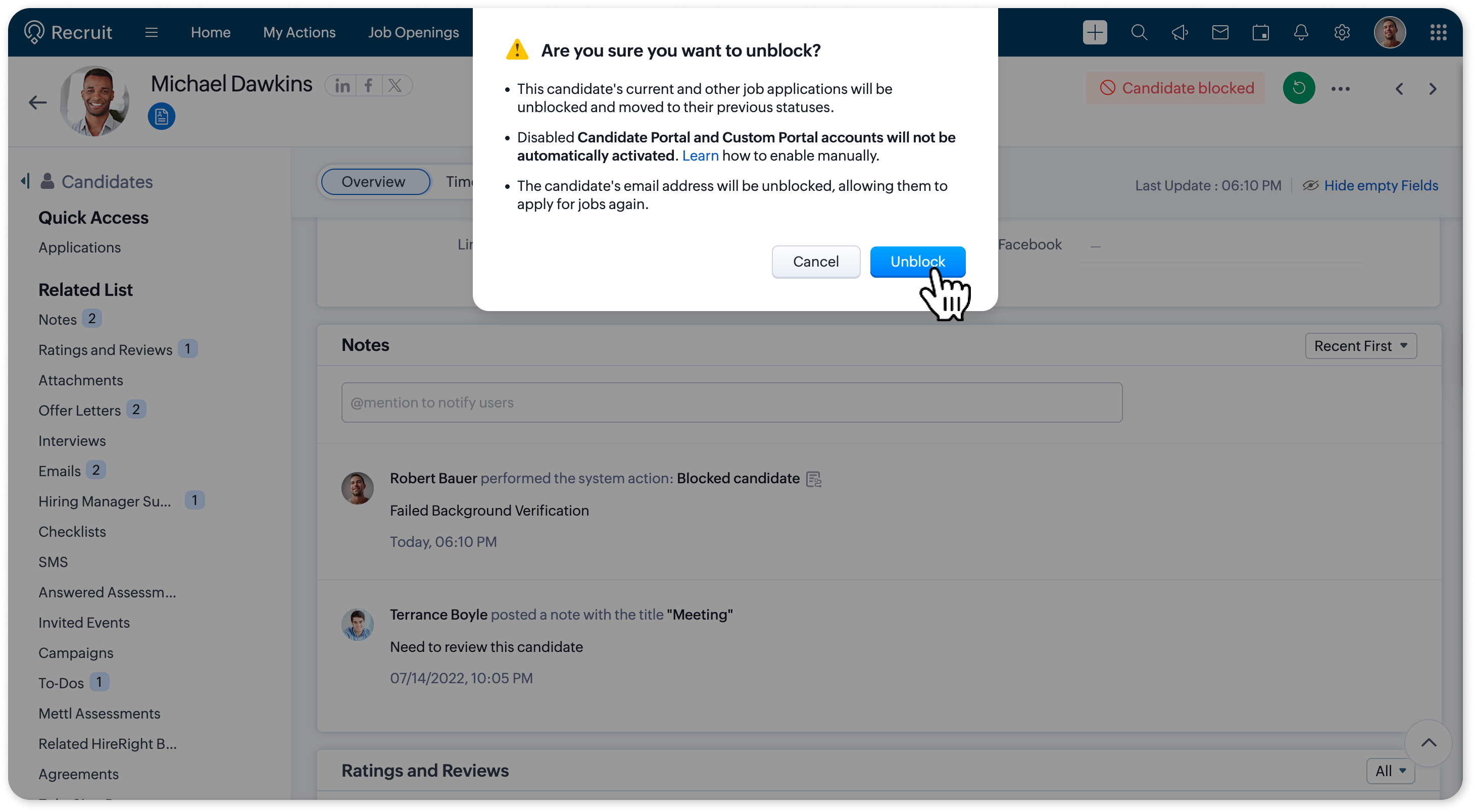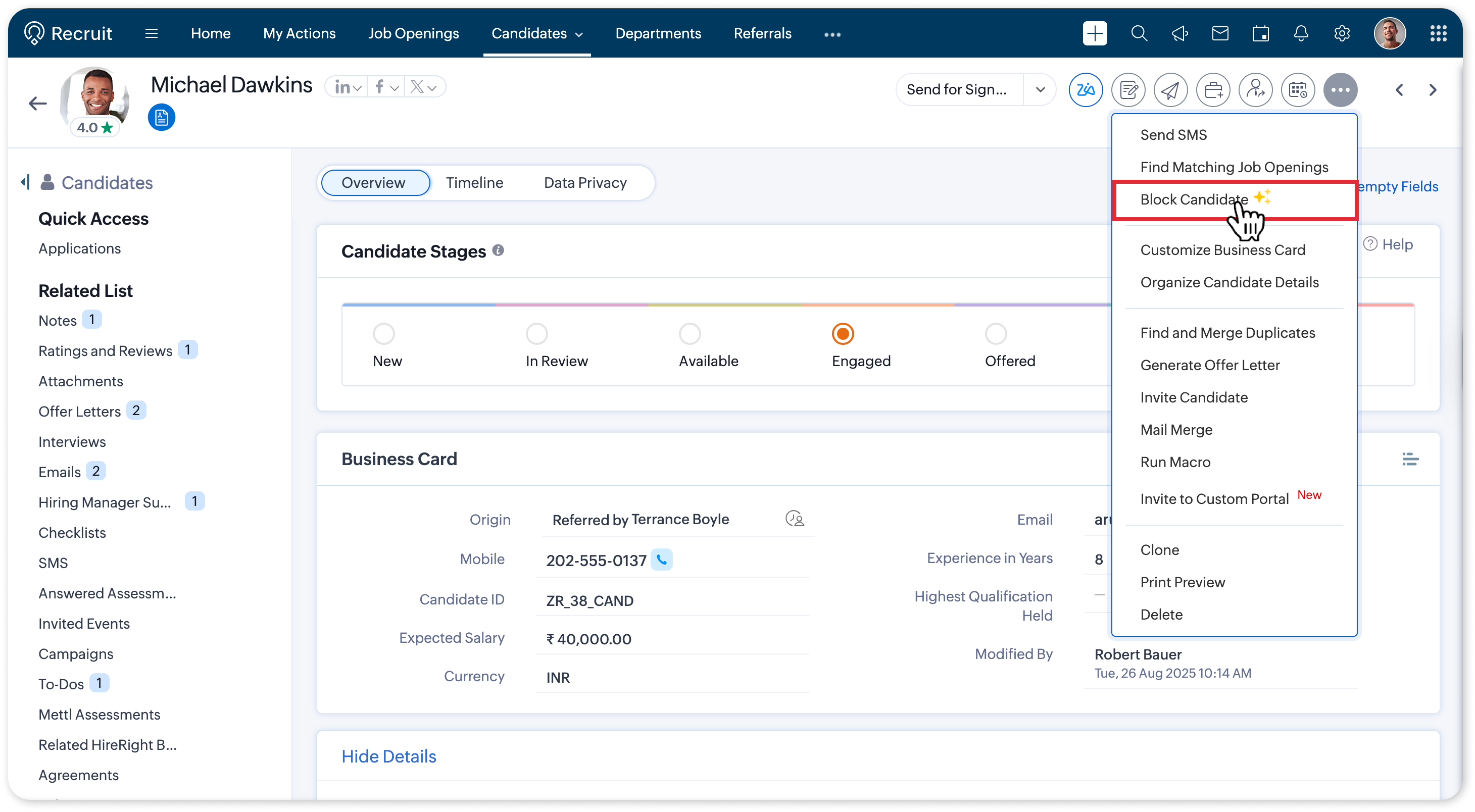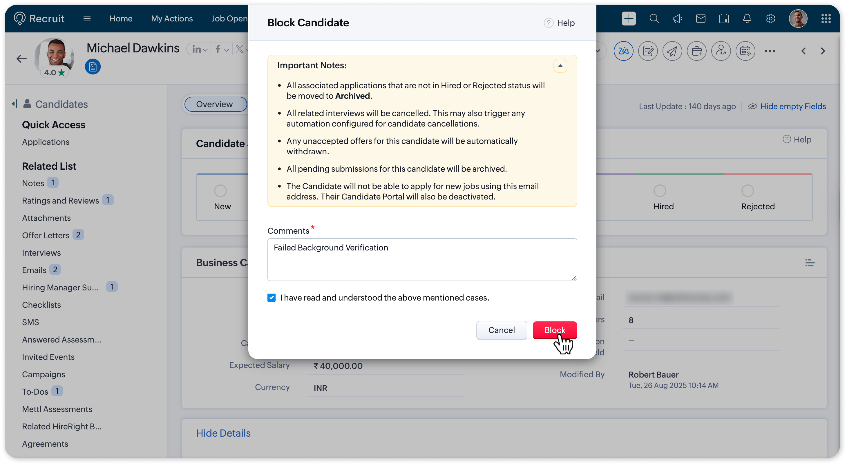Info:All applications submitted by the candidate except those in Hired or Rejected status will be automatically moved to Archived