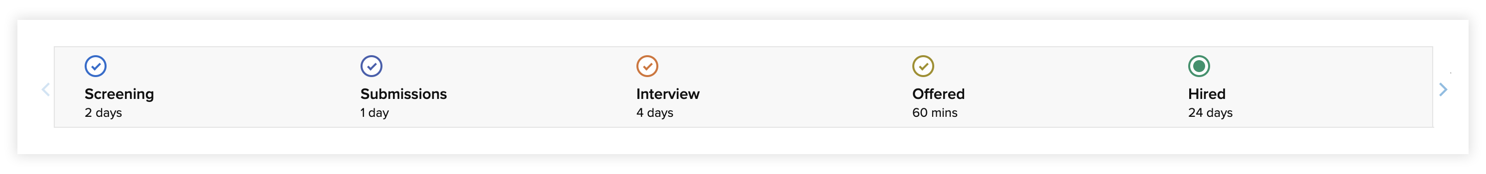 3. When a job opening is not closed or if the candidate status is not locked, the final status of the timeline will display your current time.