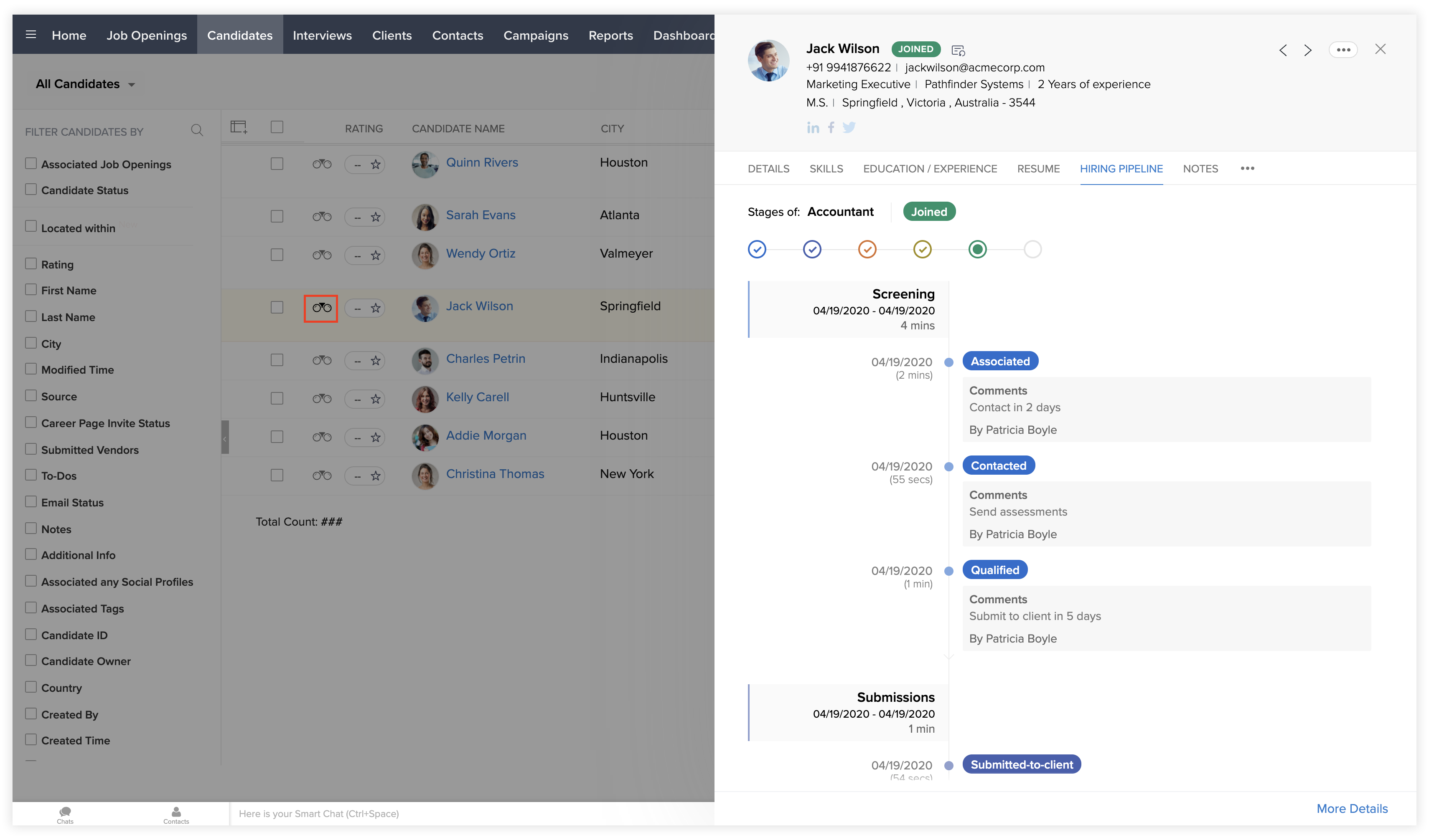 Zoho Recruit | Hiring Pipeline - Candidates Module