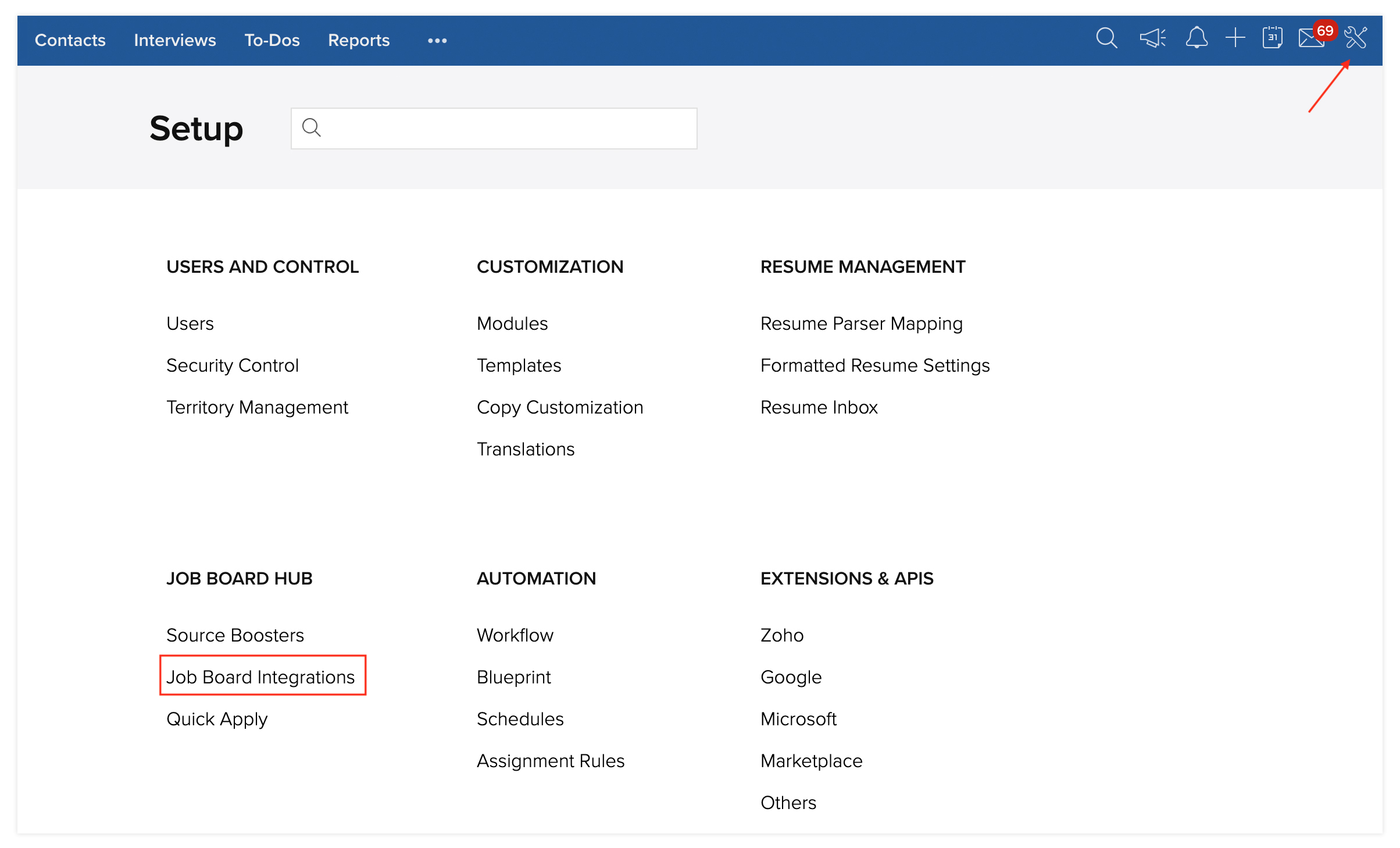 1. Navigate to Setup > Job Board Hub > Job Board Integrations.