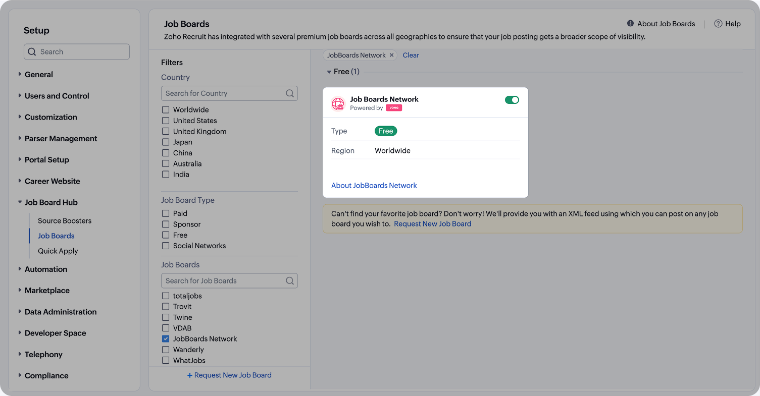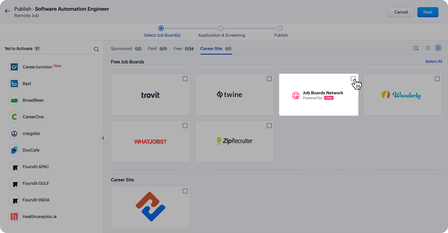 Note: VONQ will distribute your job details to supported regional job boards in the network that match the location.