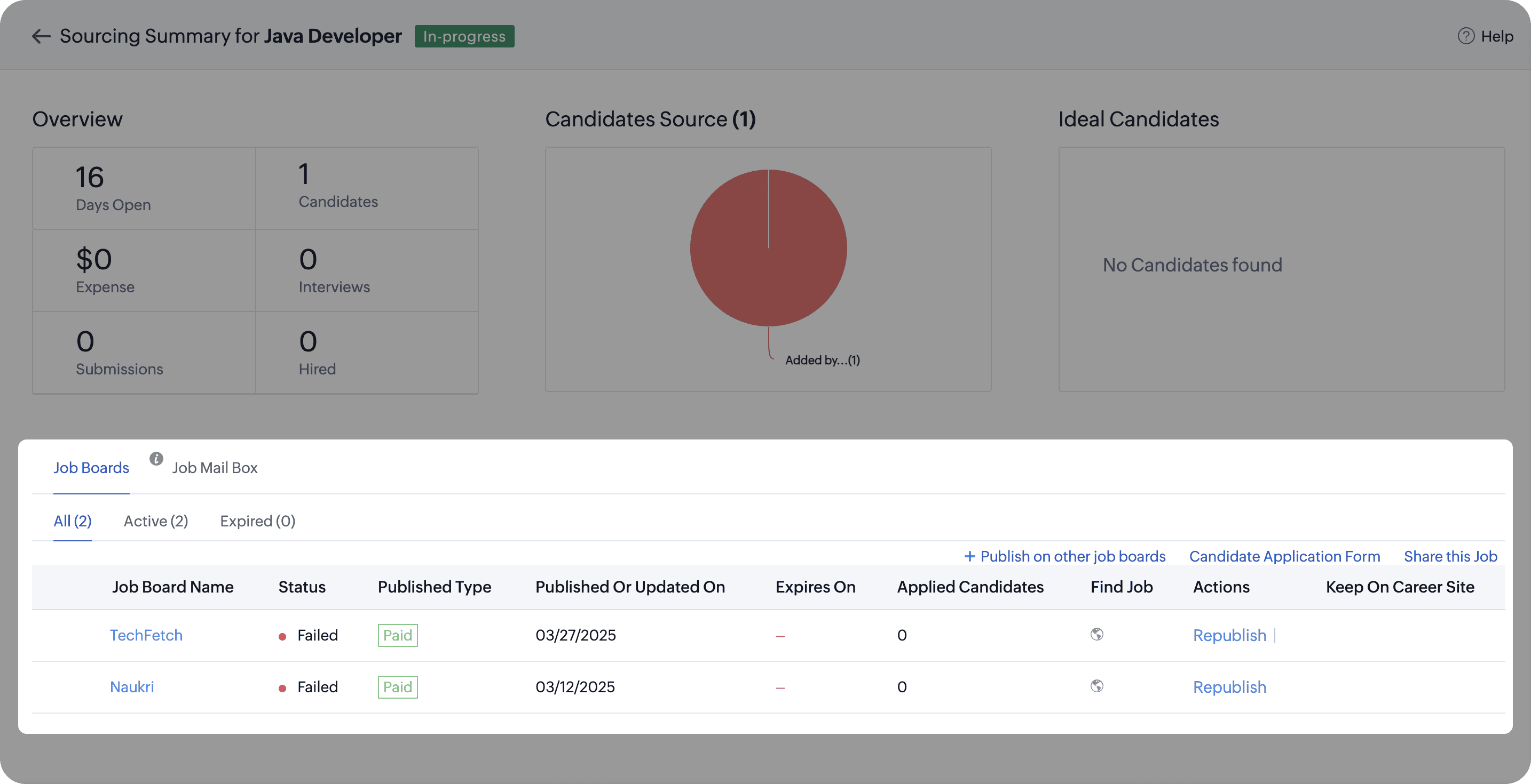 3. From the Sourcing Summary page, you can choose to Republish the job if you wish to.