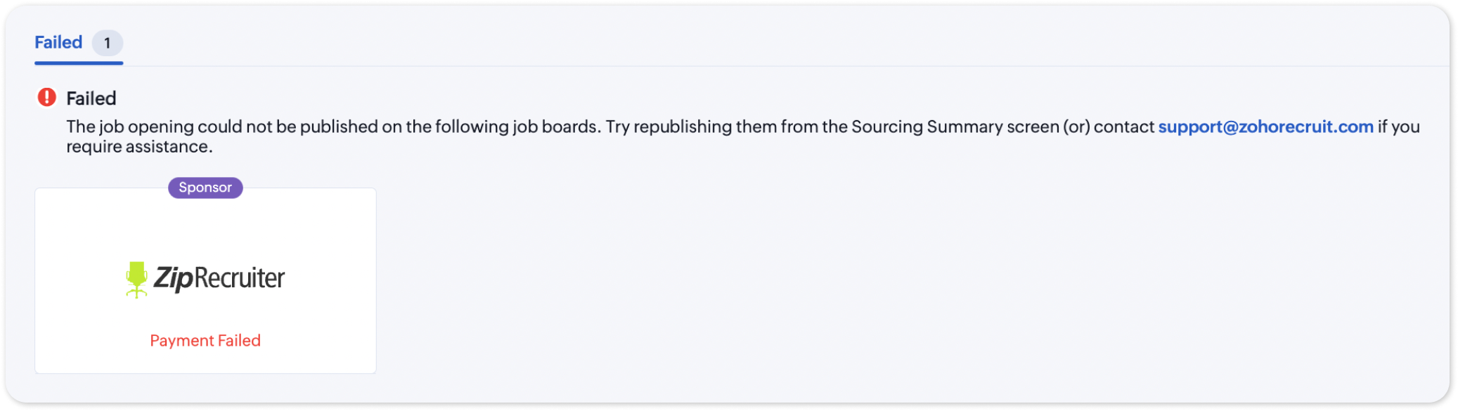 3. In the Failed tab, you can find the list of job boards on which the job publishing failed.