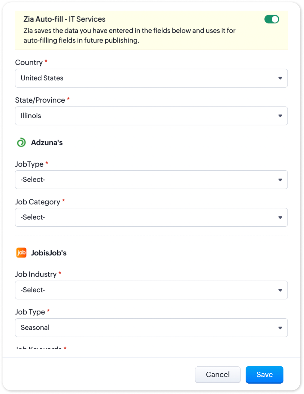2. Check the job boards you wish to publish on, enter the required details and click Save.