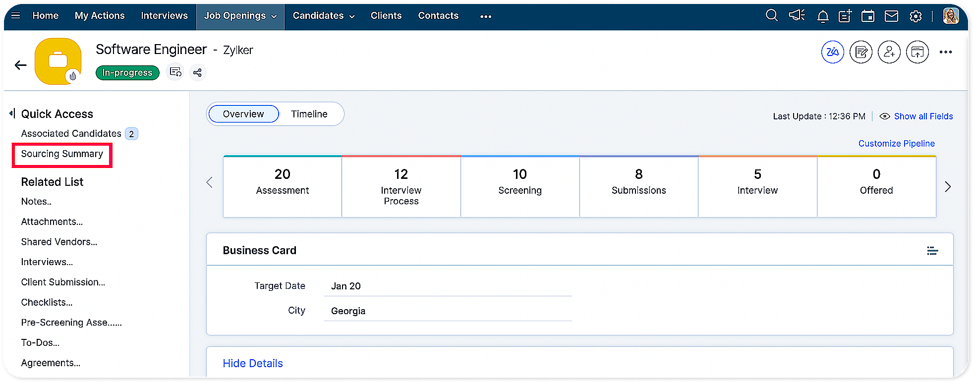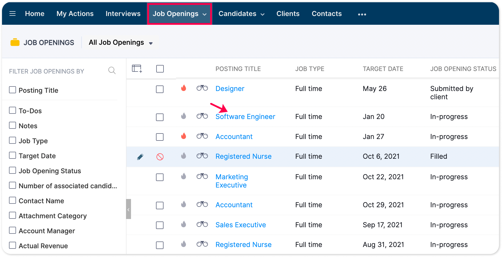 1. Go to the Job Openings module and select the job you wish to get insights for.
