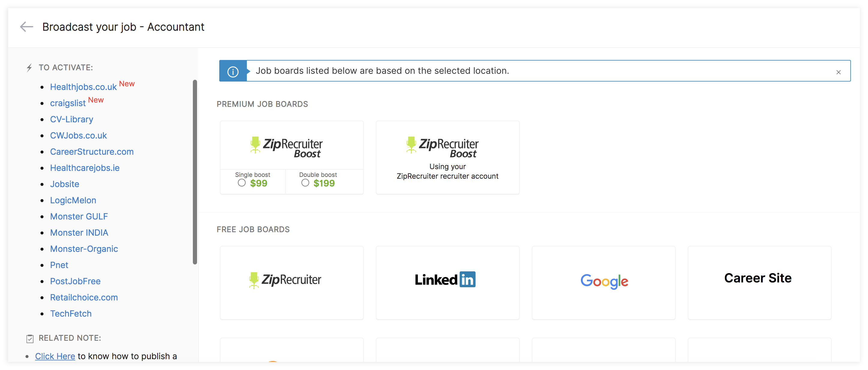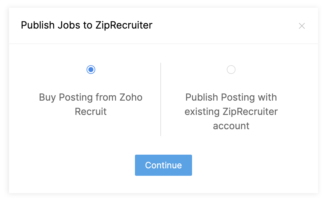 Zoho Recruit's integration with ZipRecruiter allows your organization to publish jobs to the ZipRecruiter platform and track inbound candidates. To enable job postings on Zip Recruiter through Zoho Recruit: