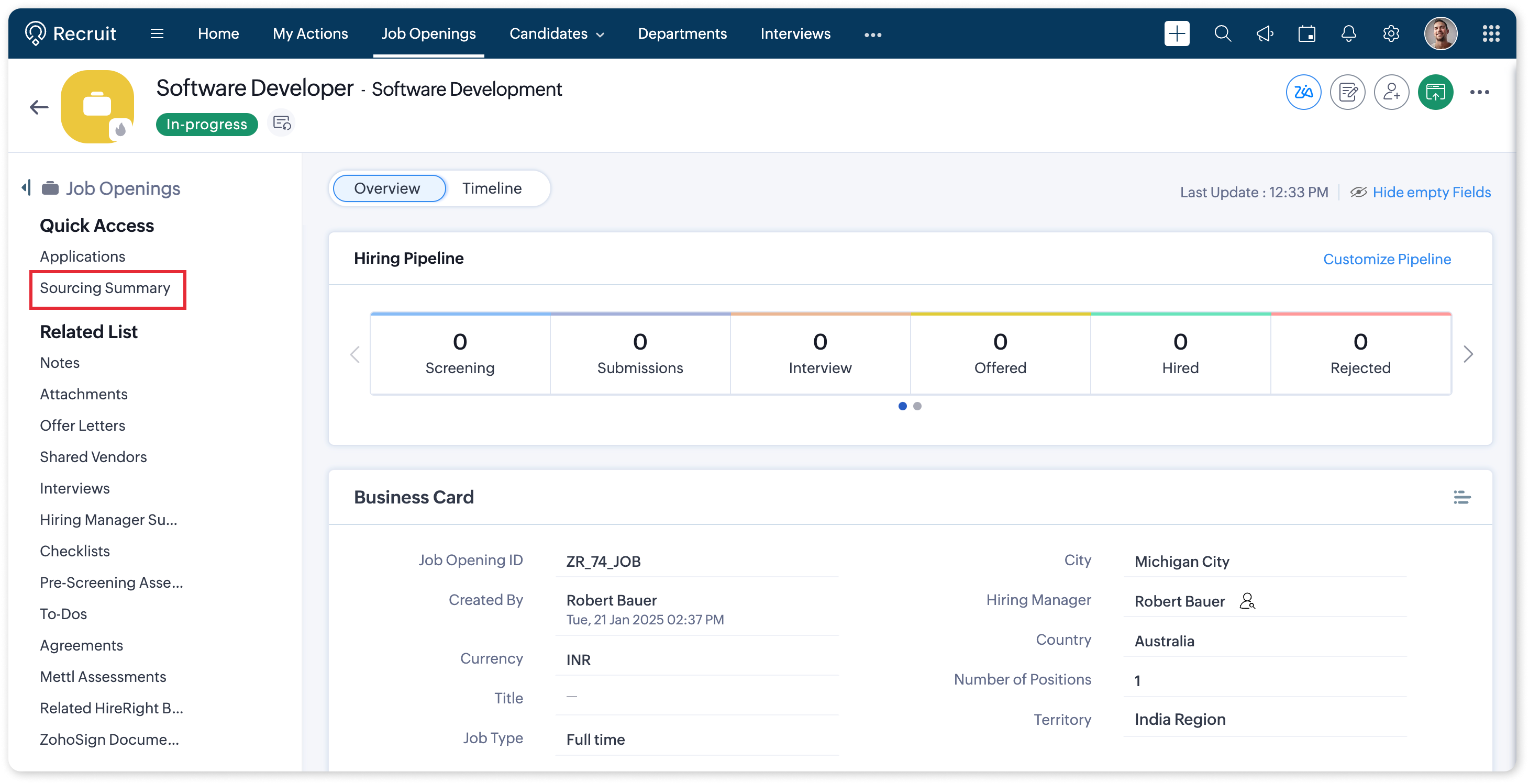 - Click on the respective job opening published using SEEK, select Sourcing Summary.