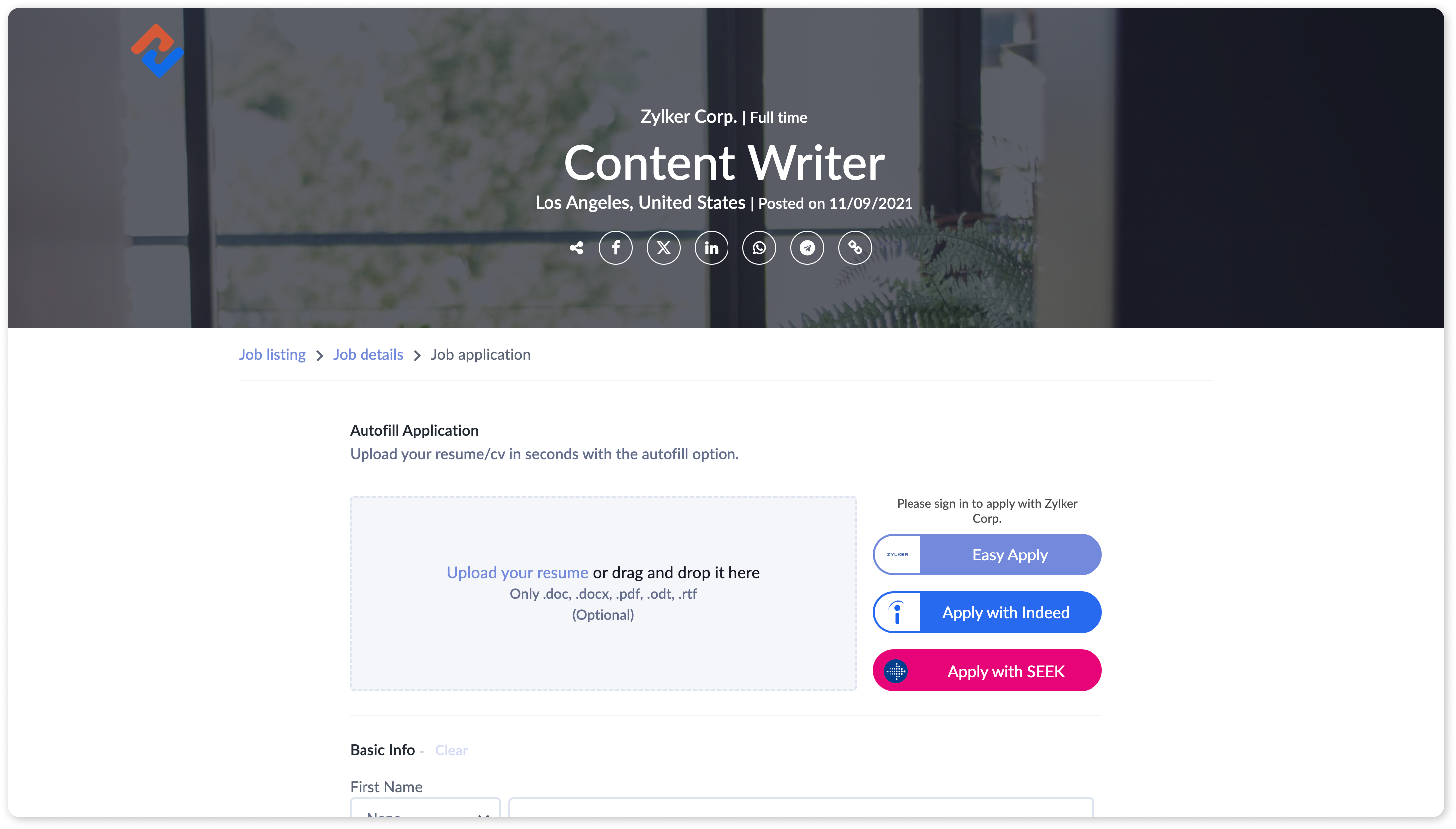Key fields are automatically filled using the candidate’s profile information, making the entire process quicker and more efficient.