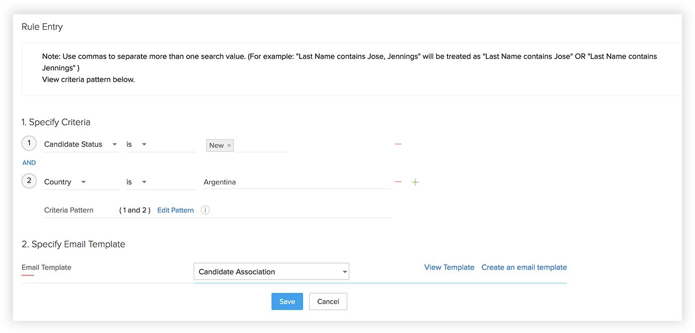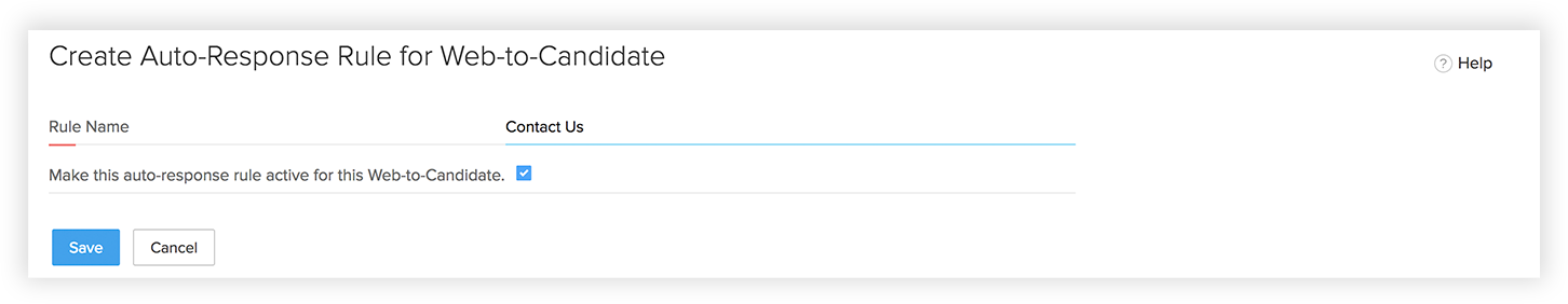 The Auto Response rule feature enables you to send automated emails when candidates and contacts for the custom modules are generated through web forms. When candidates are generated through web forms, you may want to send relevant emails to the candidates with different types of requests. In such cases, you can create an auto response rule with specific rule criteria. When the condition is satisfied, the corresponding email will be sent. You can create numerous auto response rules but only one auto response rule can be active at a time.