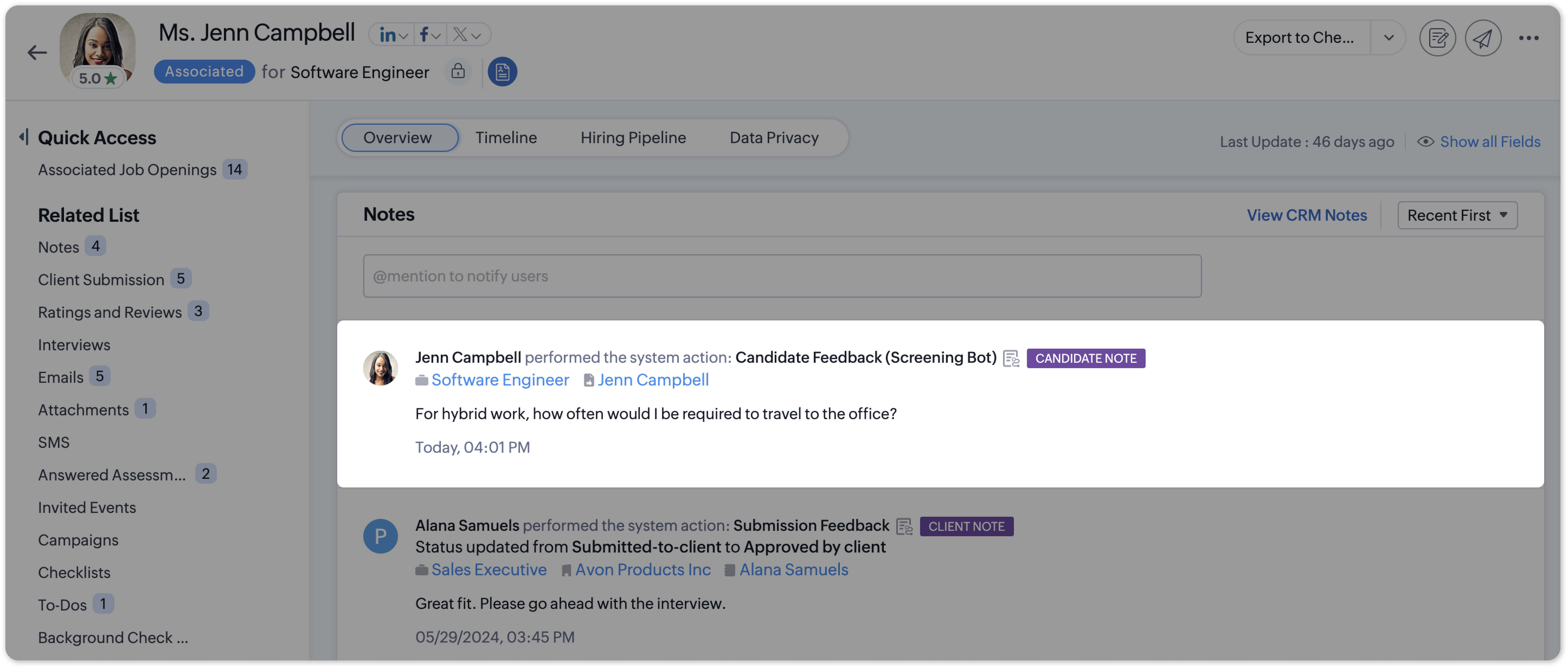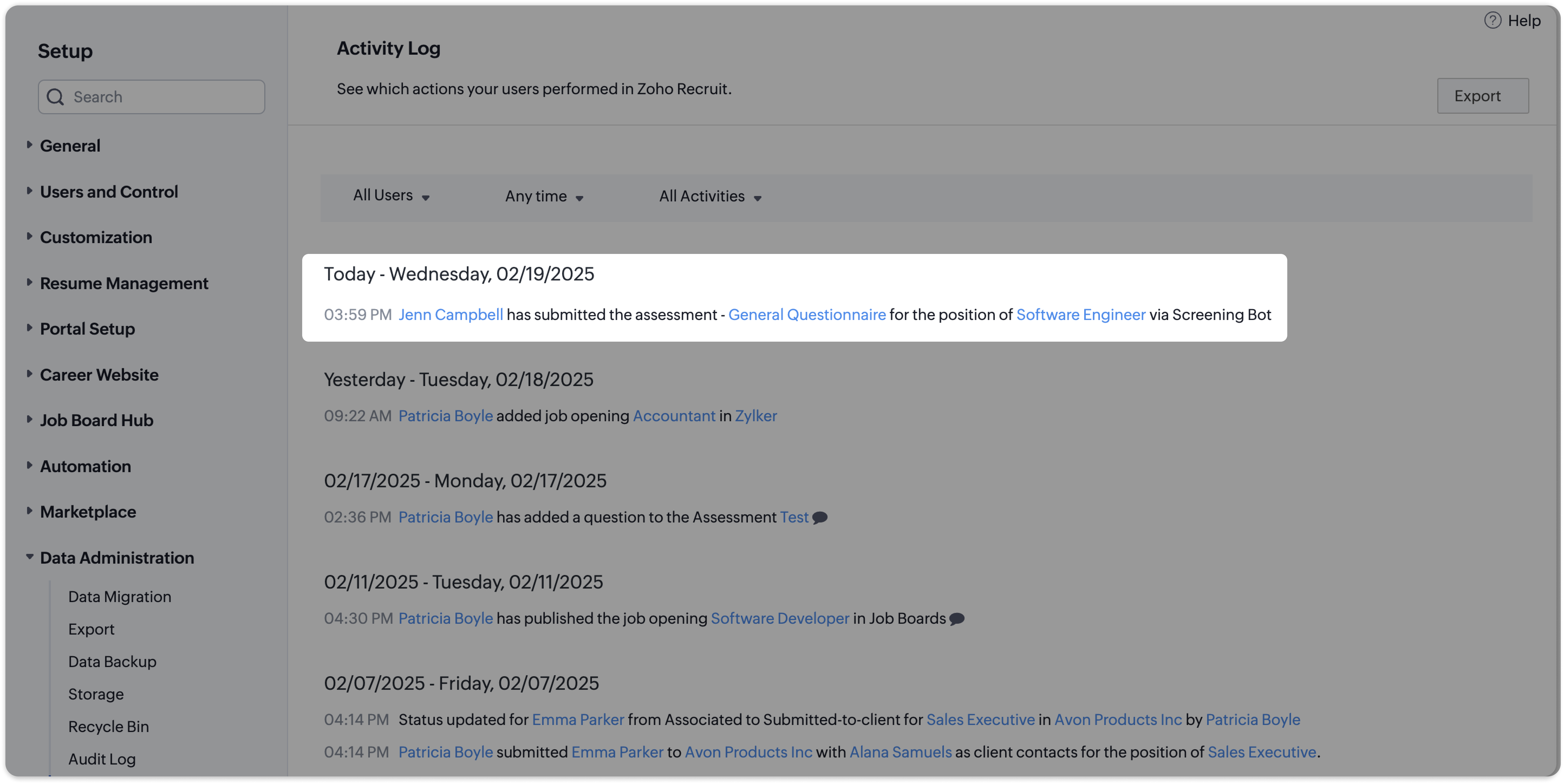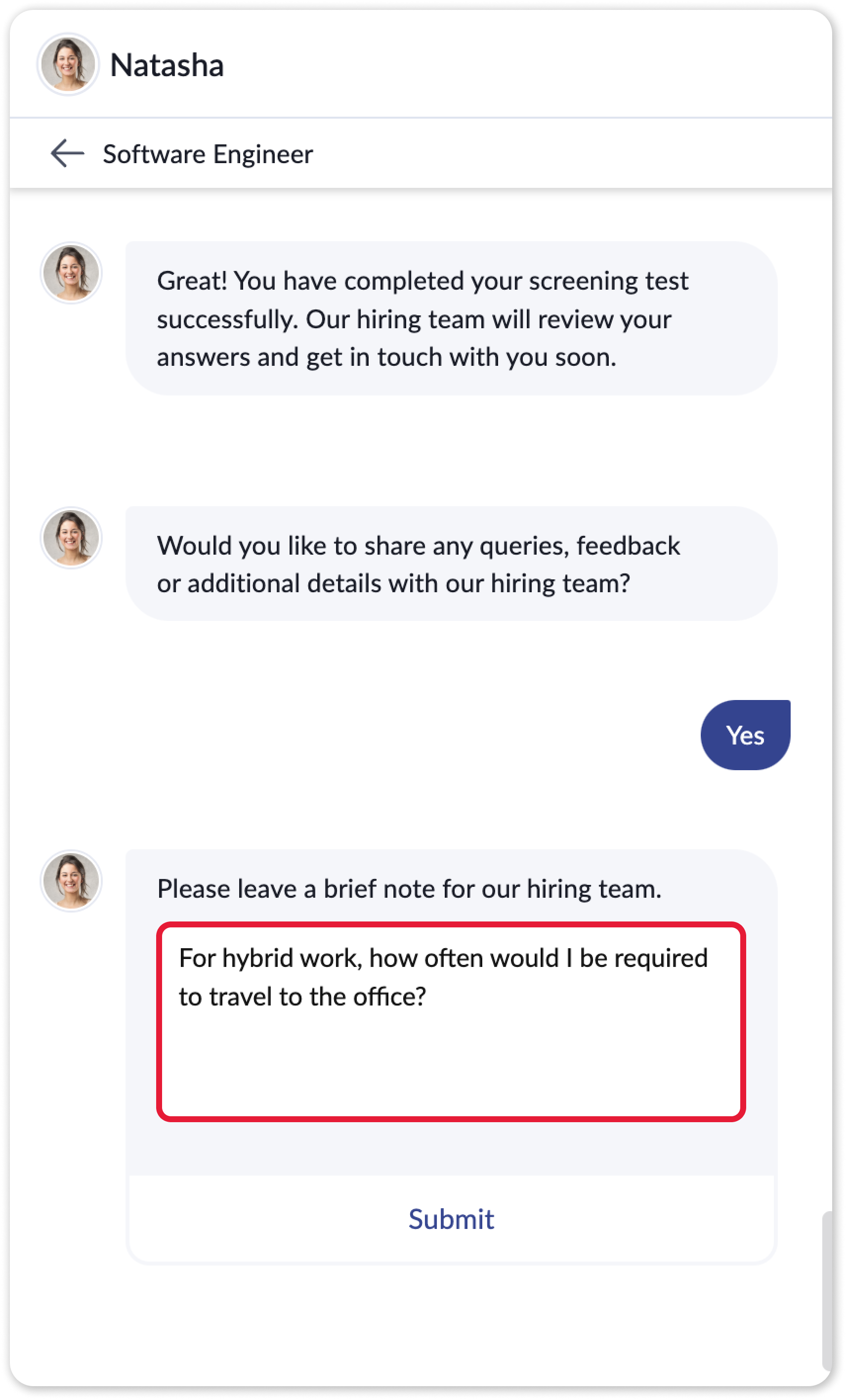 The Screening Bot automates pre-screening assessments by allowing candidates to take tests for the jobs they’ve applied for. This ensures a smoother screening process, helping recruiters efficiently identify qualified candidates.