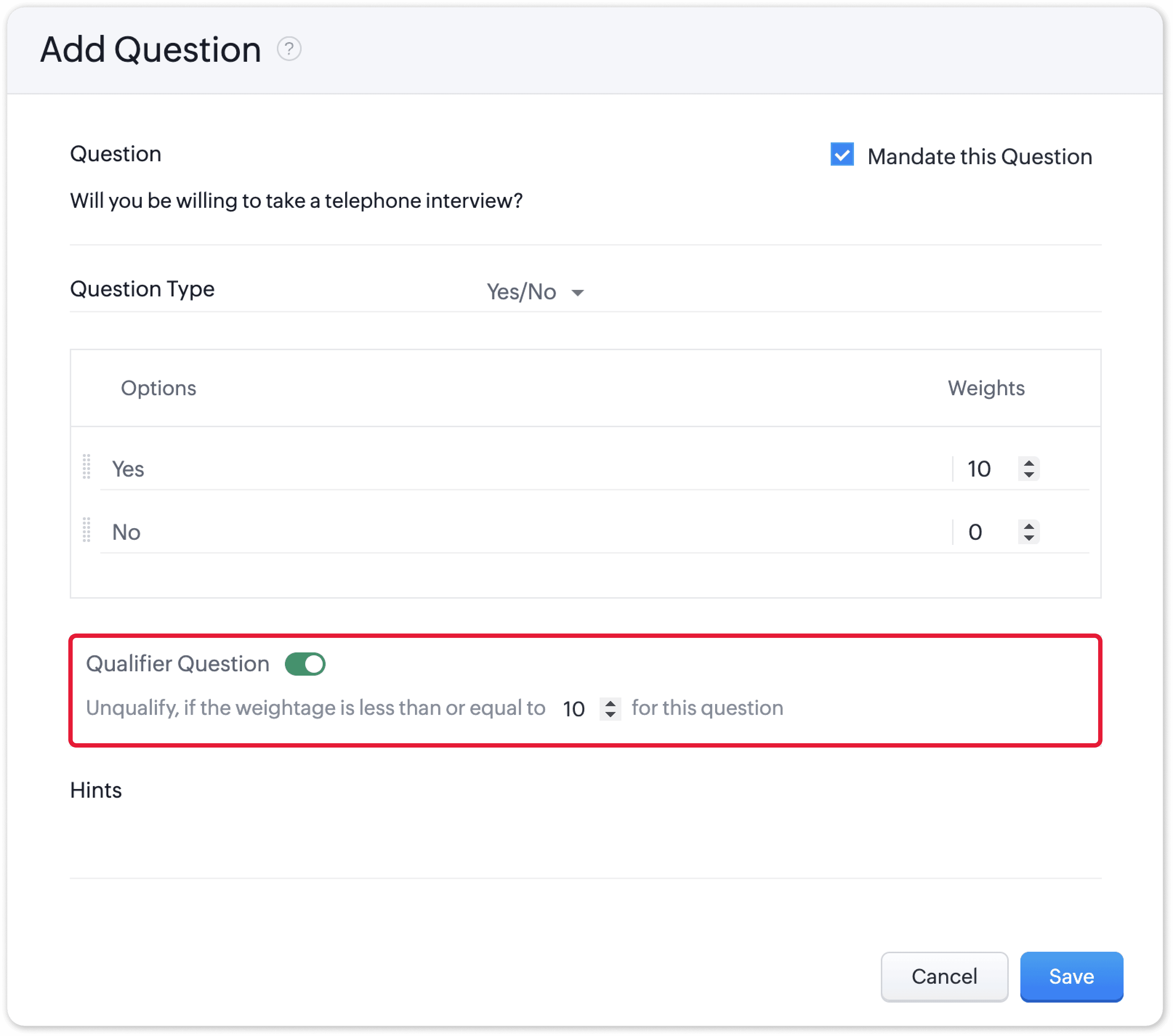 In Zoho Recruit's Assessments, Qualifier Questions are specific questions used to determine whether a candidate meets the minimum criteria for a job. These questions work like filters—candidates who answer them incorrectly can be automatically disqualified. See More Assessments