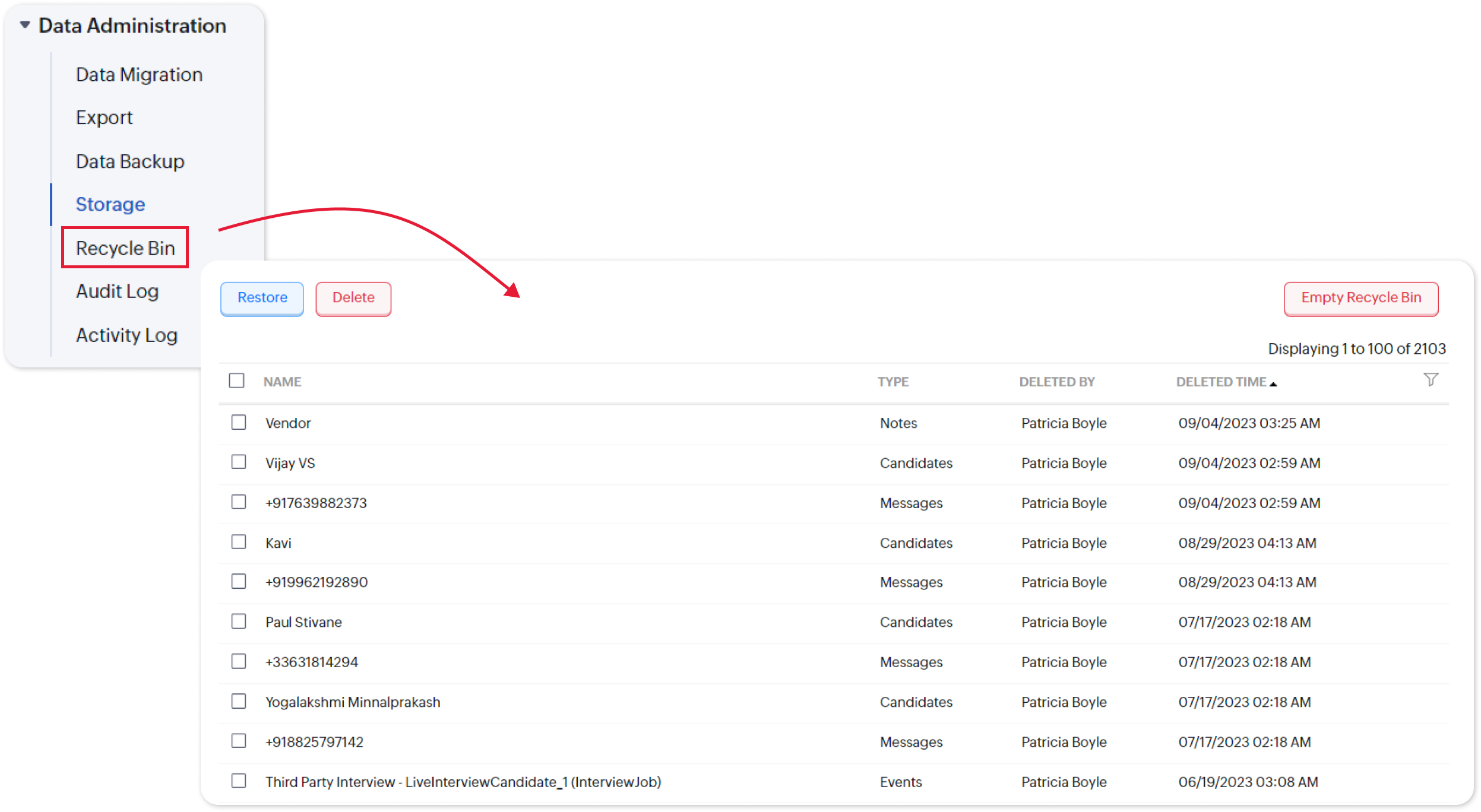 - Only users with an administrator profile can delete records from the Recycle Bin.