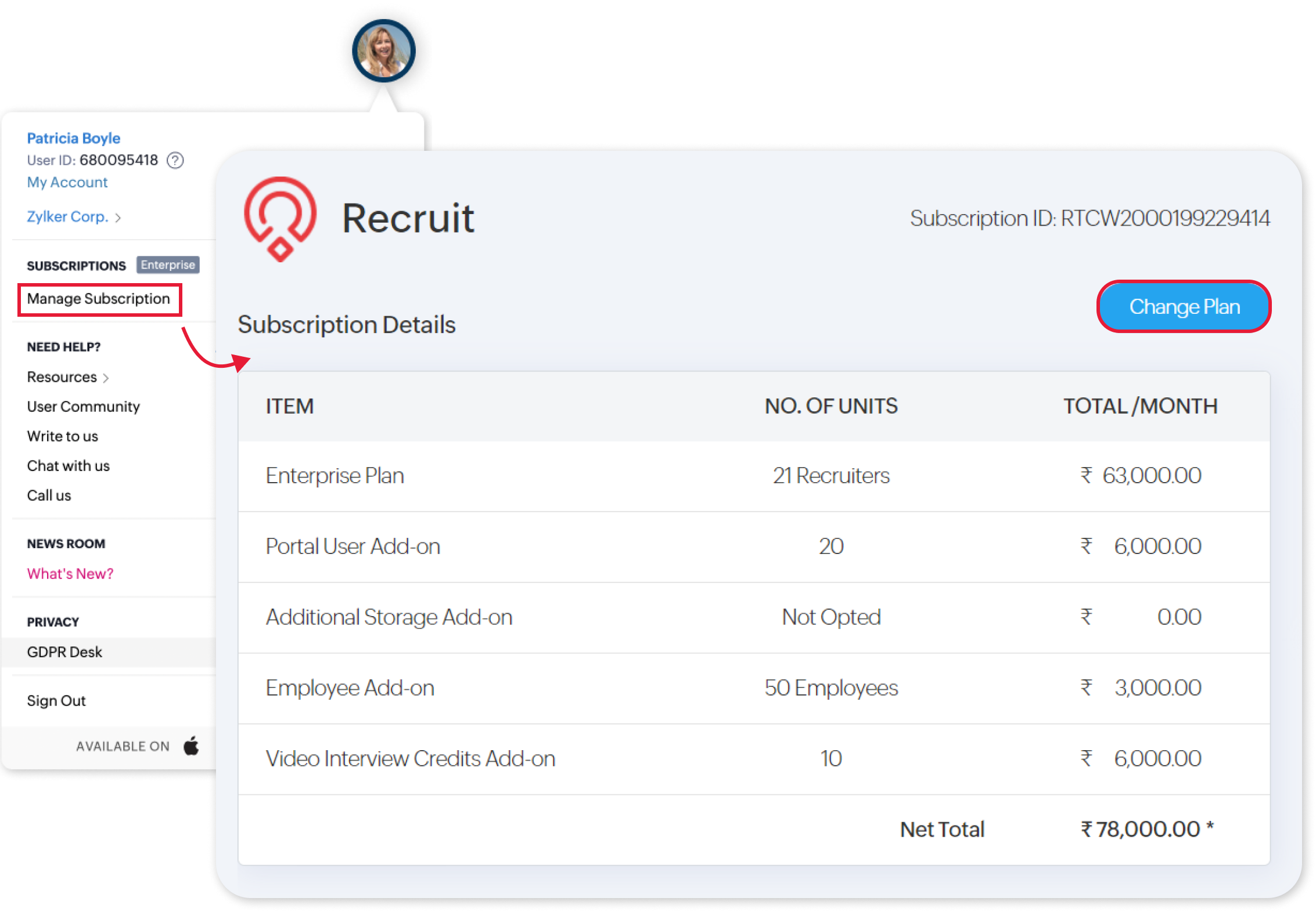 As an administrator or user with subscription management permissions, you have the flexibility to customise your Zoho Recruit experience to match your unique requirements. Our goal is to make this process as straightforward as possible, empowering you to take full control of your Zoho Recruit subscription.