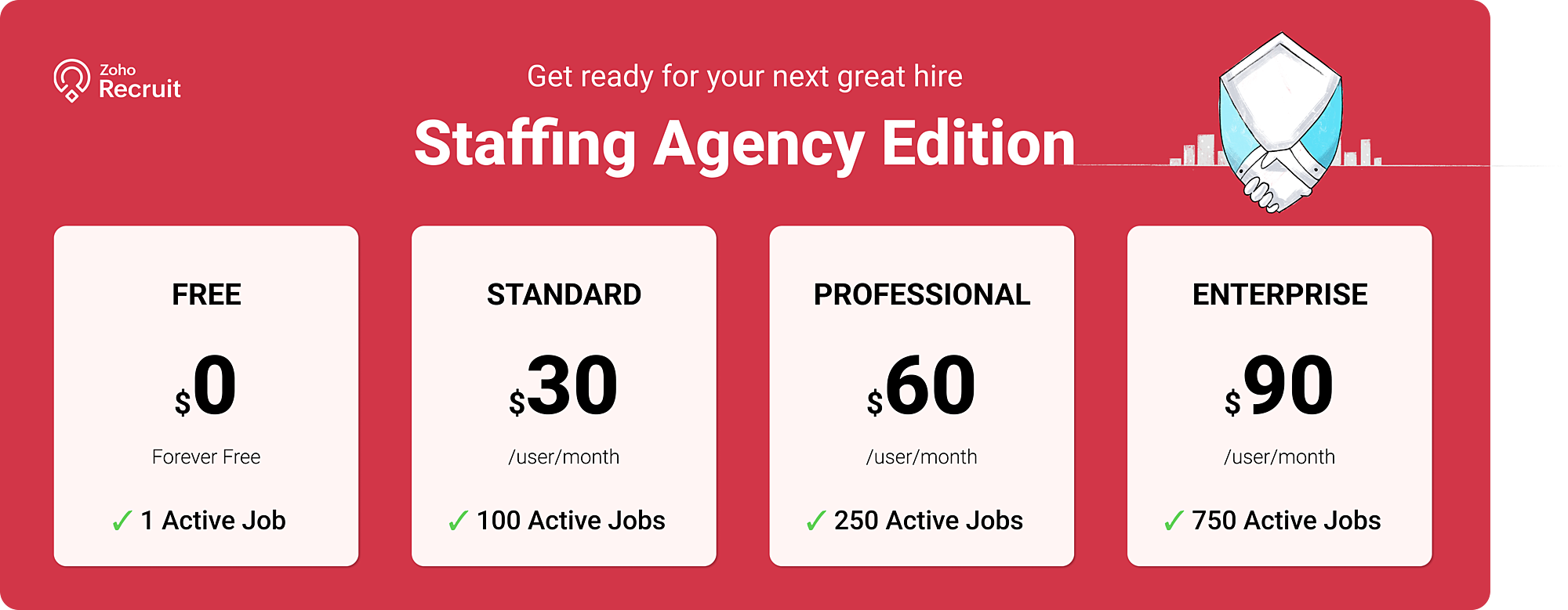 Every company has unique hiring needs, from seasonal recruitment to industry-specific recruitment and contract workforce management. Zoho Recruit is designed to meet these diverse needs, with plans tailored to give you the most value for your investment.