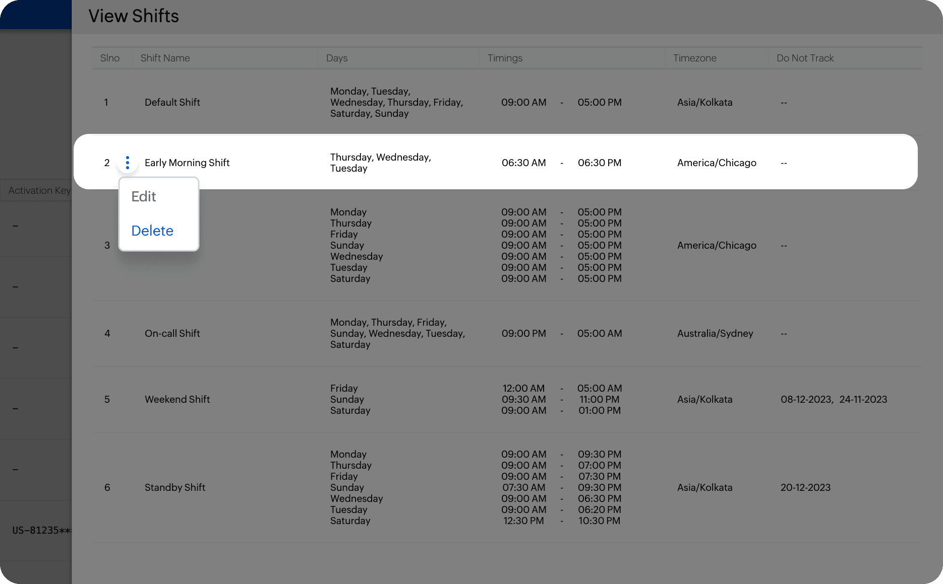 Hover over the shift you want to delete and Click the three dot menu