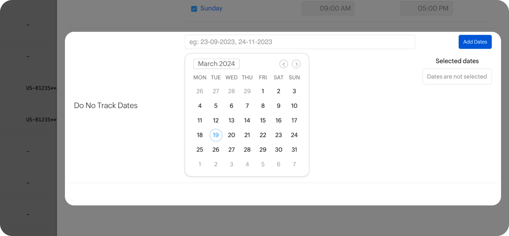 Select the days you don't want to track. ex - non-workings days like public holidays, vacation days etc.