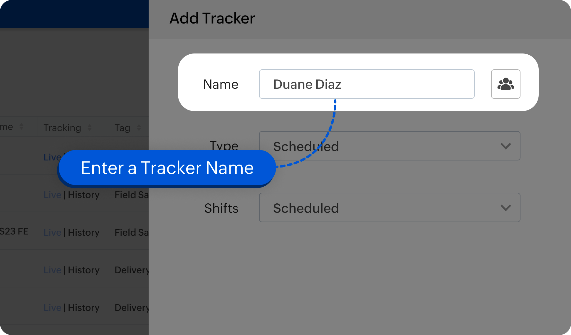 Enter tracker name