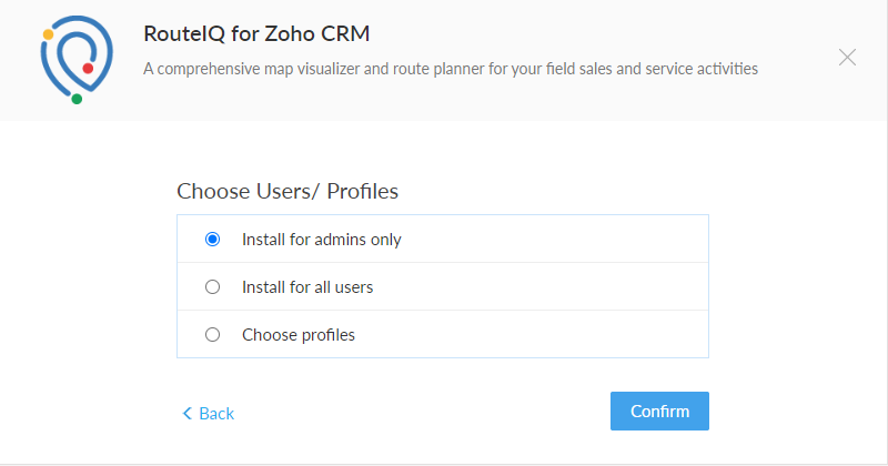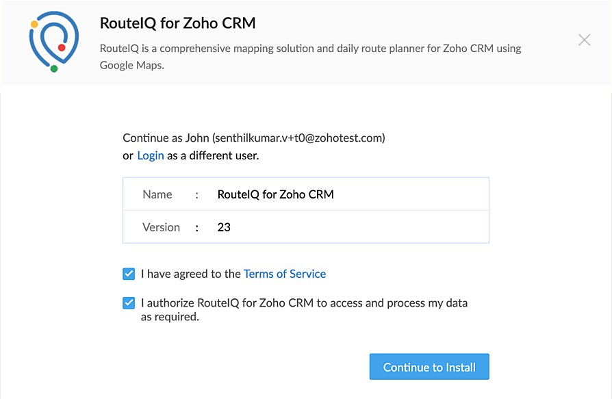 Click the Install button to install RouteIQ in Zoho CRM.