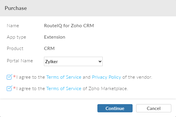Visit the RouteIQ extension page in Zoho Marketplace. (Refer above table for your location based marketplace link)