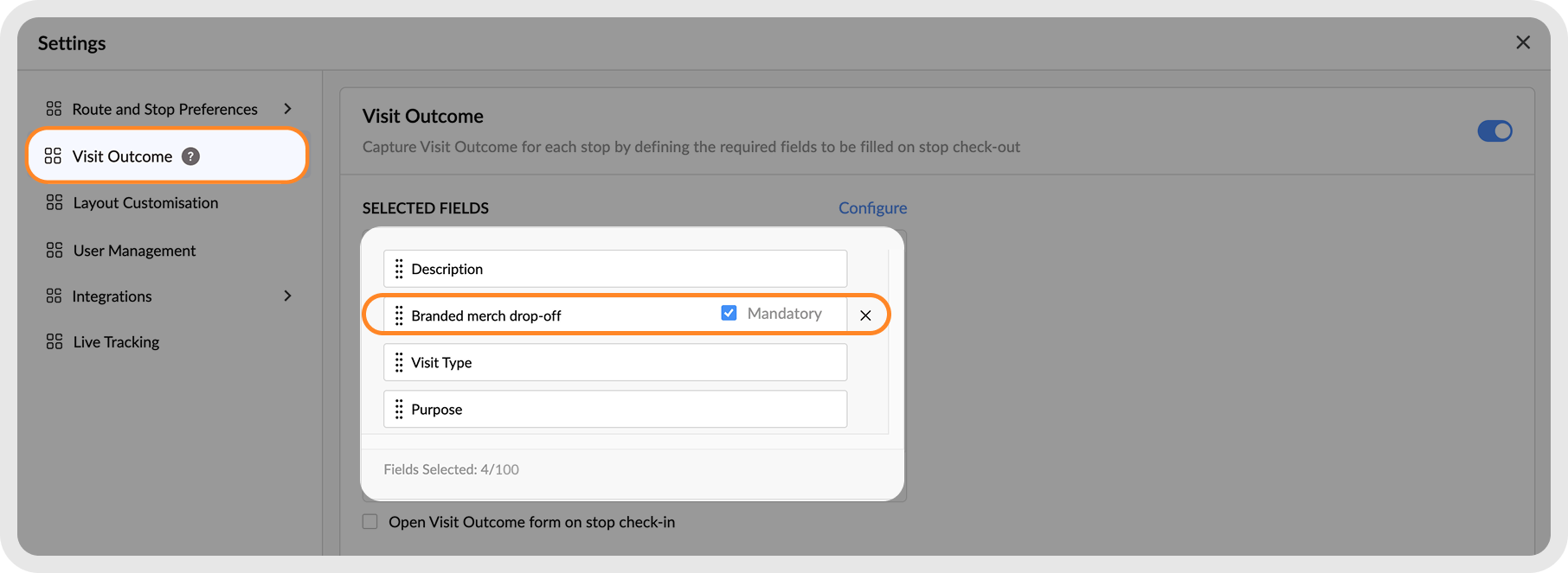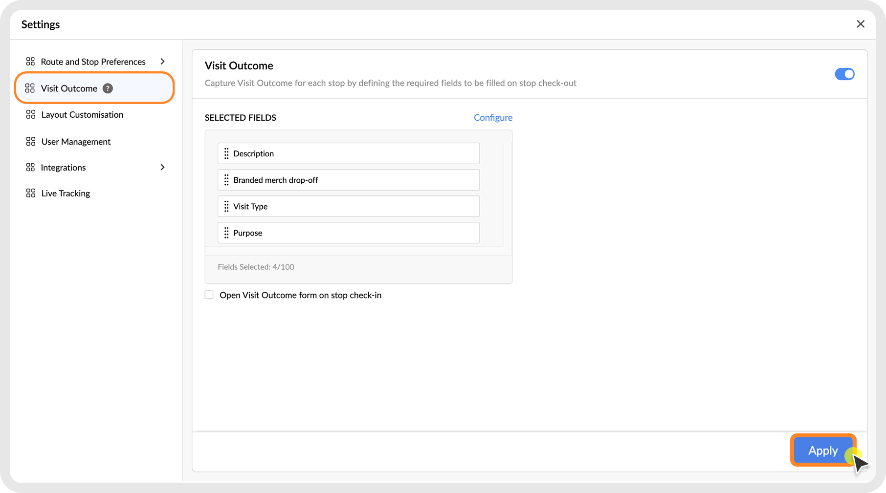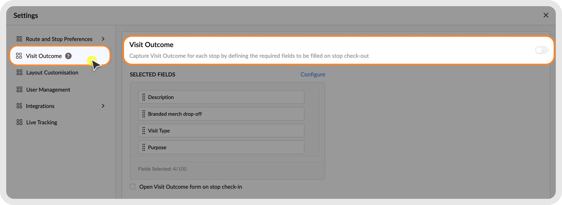 How to set up the Visit Outcome feature