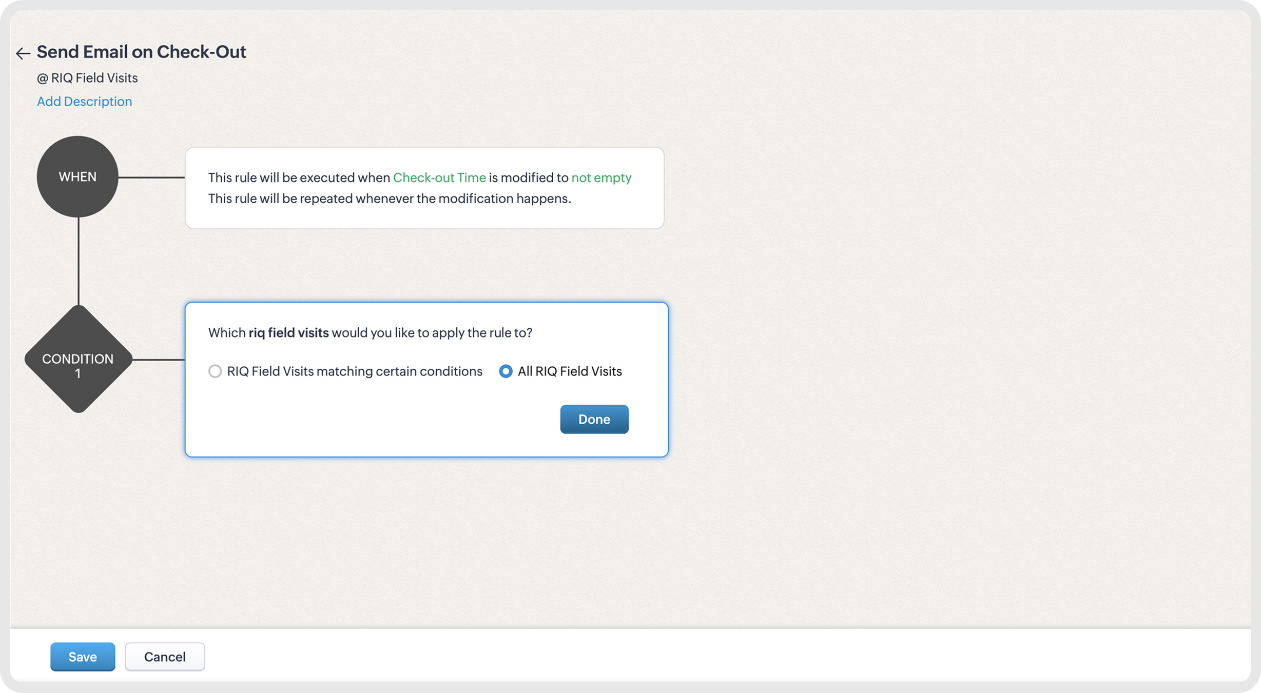 All done! You have now successfully set up a workflow to automate the sending of notifications via email to a contact person in a stop once you check out of it.