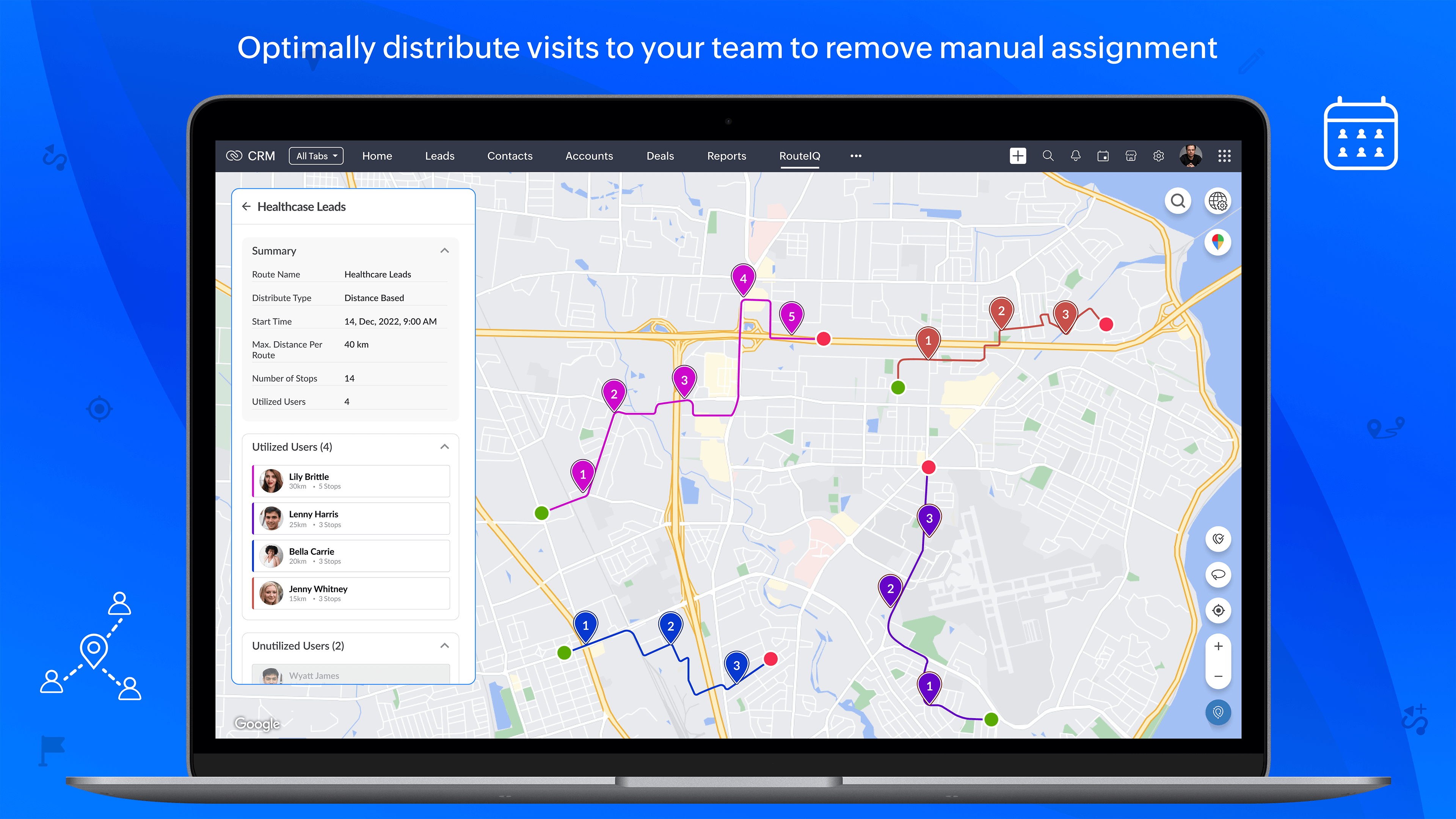 RouteIQ is a comprehensive mapping solution that enhances Zoho CRM by providing Map Visualization, Optimized Route Planning, Tracking and Map Reports through the web and mobile apps.