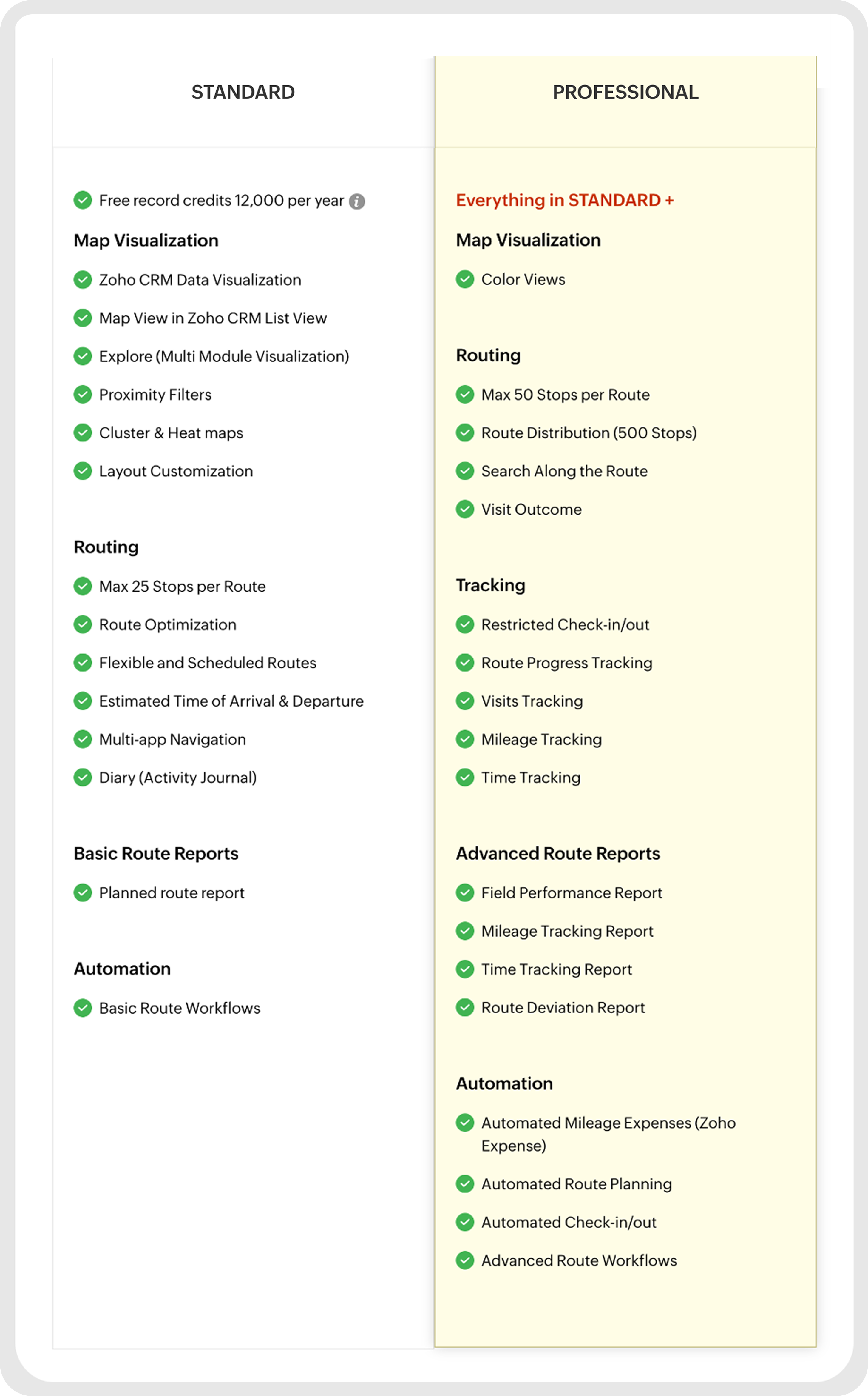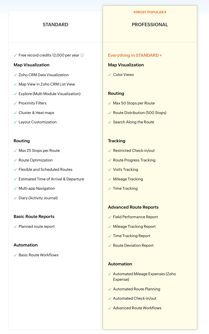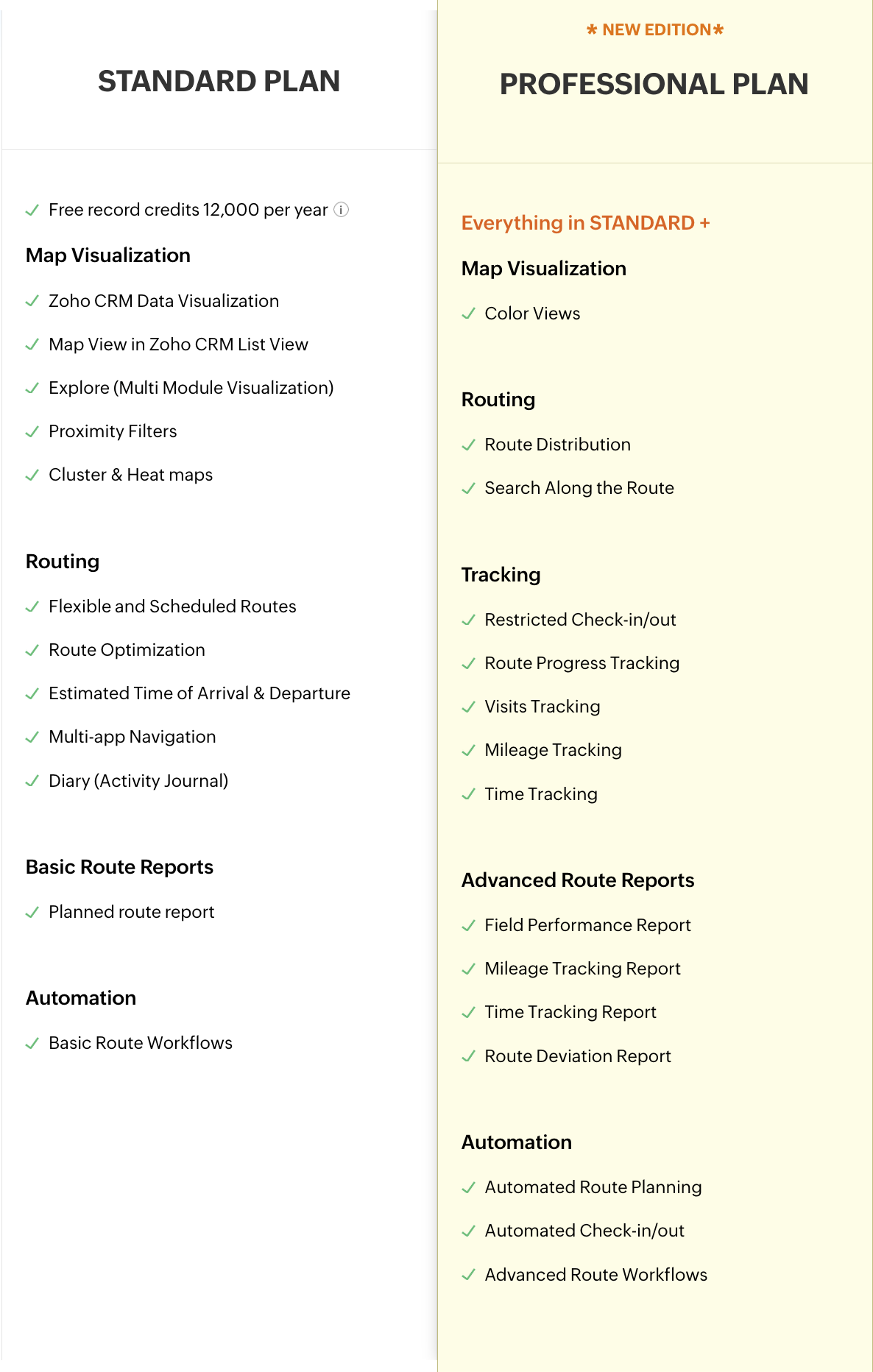 1,000 Free Record Credits per Month | A record credit is a token that is exchanged for an attempt to convert an address into GPS coordinates. They are used to visualize your Zoho CRM records on a map. Learn more. |