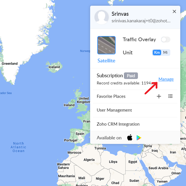 A record credit is charged when a record is integrated for the first time with RouteIQ, or when the address of a record is modified in Zoho CRM.
