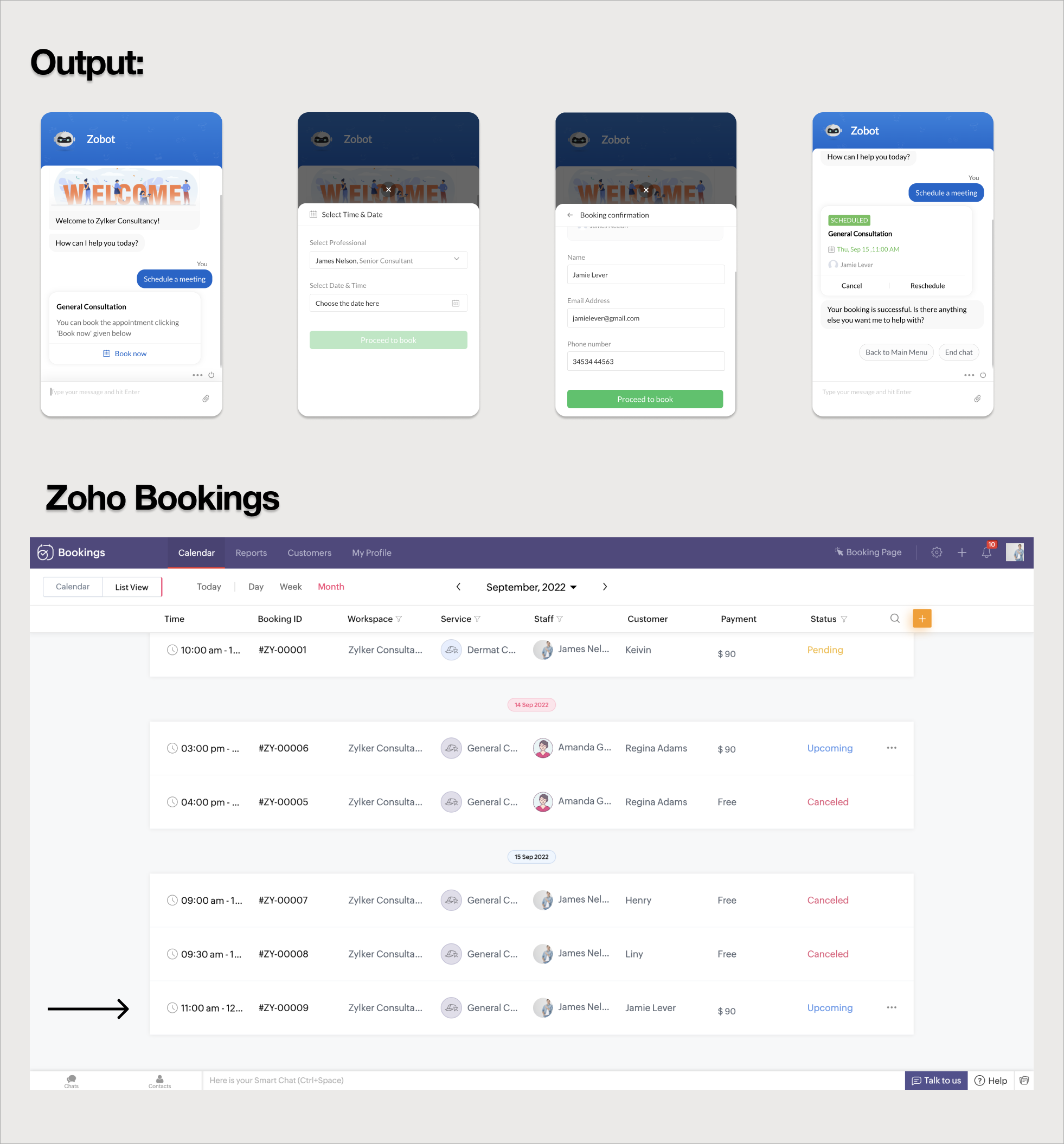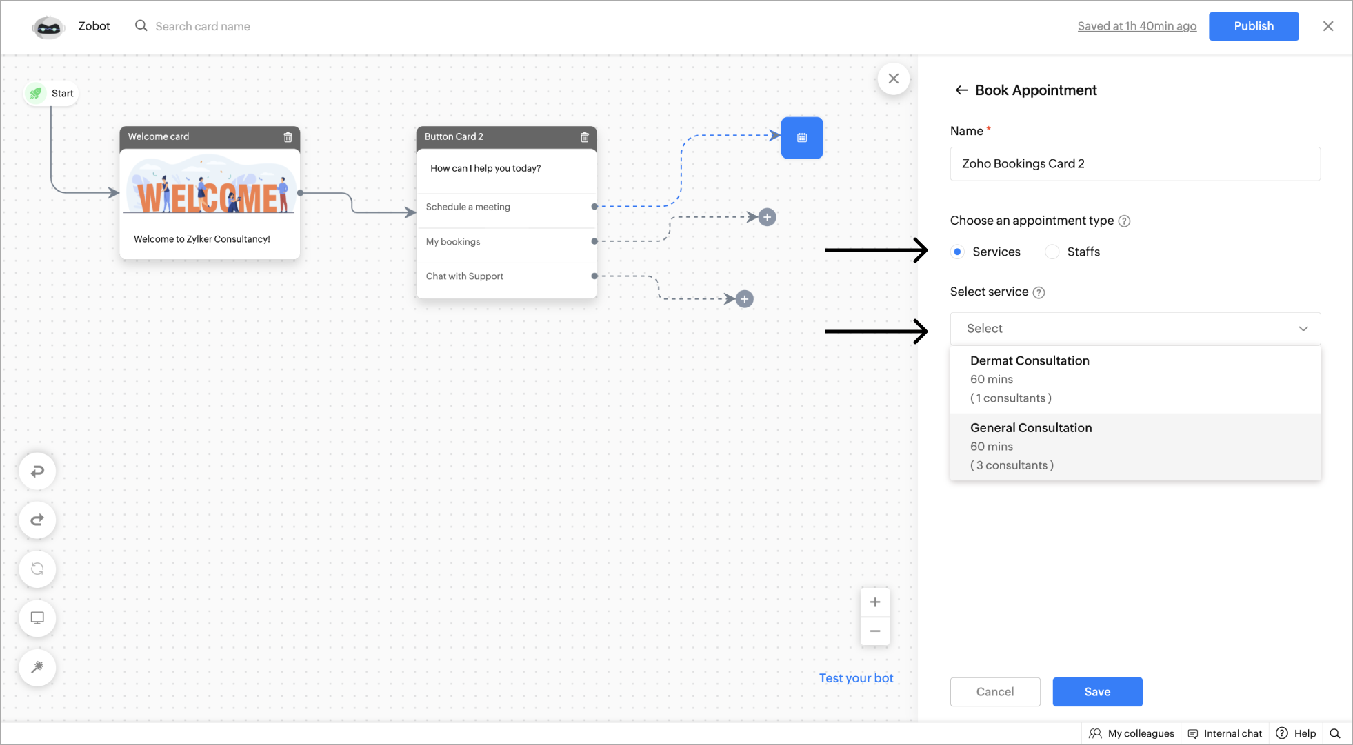 Example - Allowing visitors to schedule an appointment for a service in Zoho Bookings.