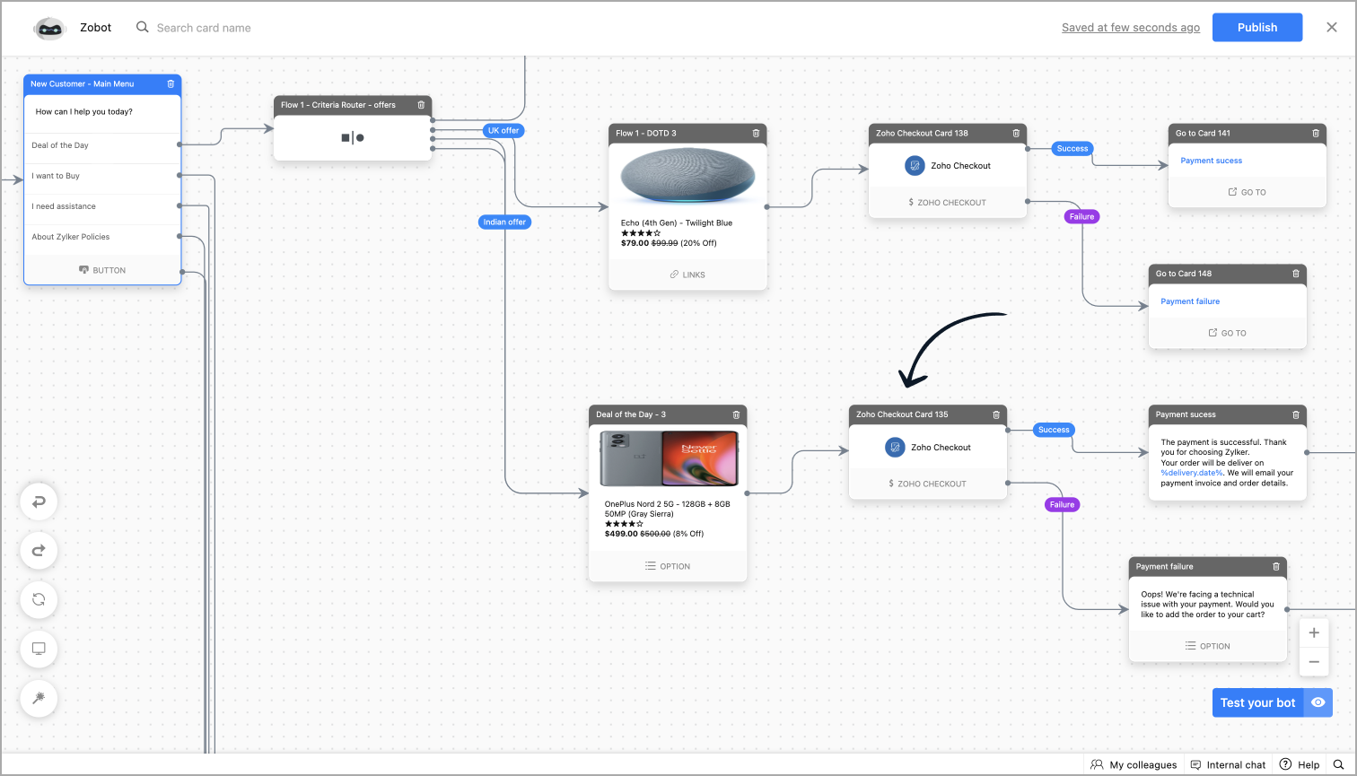 - Tickets will be created in Zoho Desk according to the configuration made in the Codeless bot.