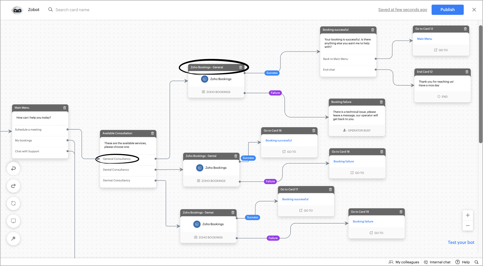 - Text Response - To add cards in case the visitors send a reply instead of scheduling an appointment.