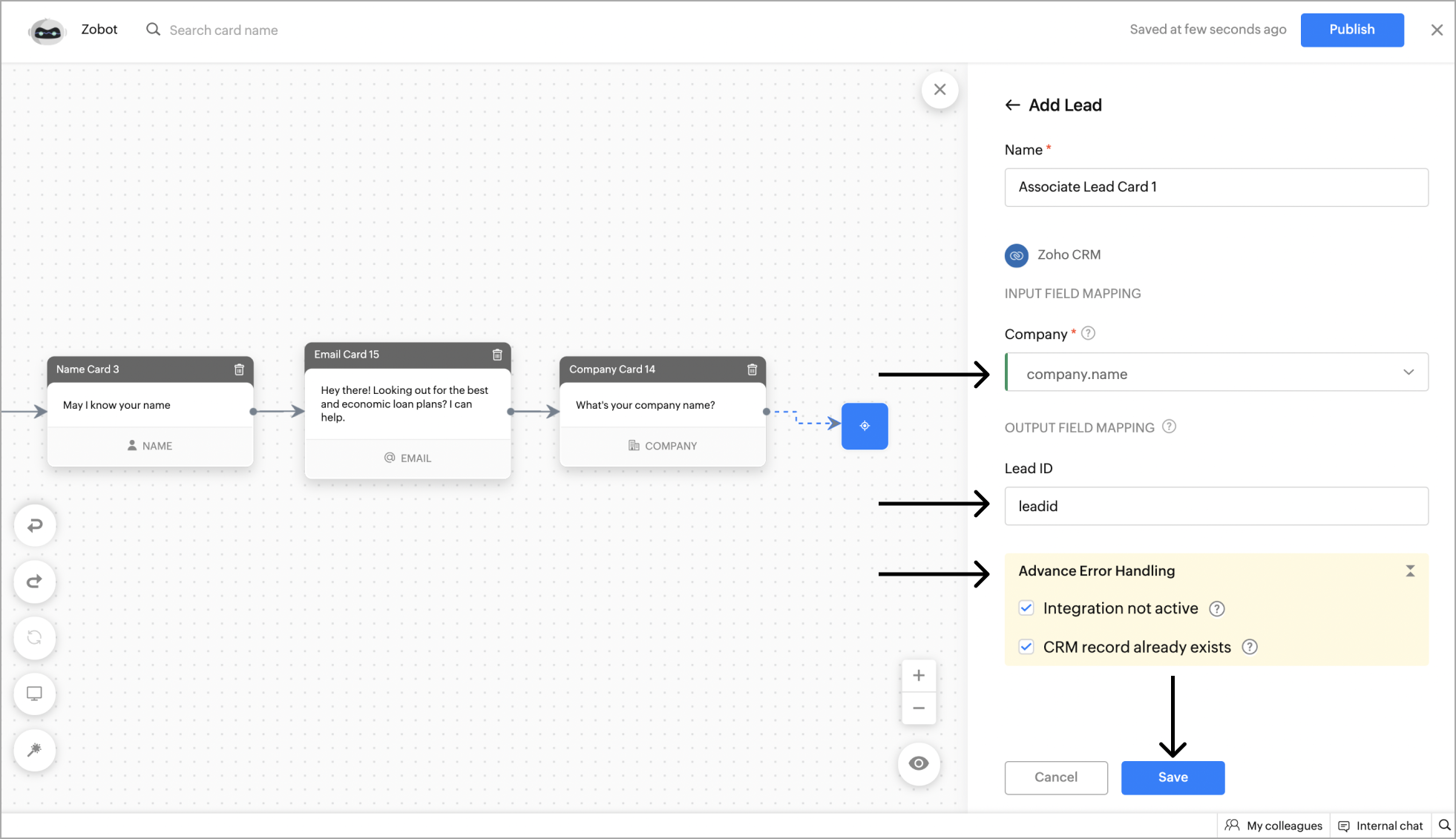 This card can be used to generate lead in CRM. To use this card, Zoho CRM integration is mandatory.