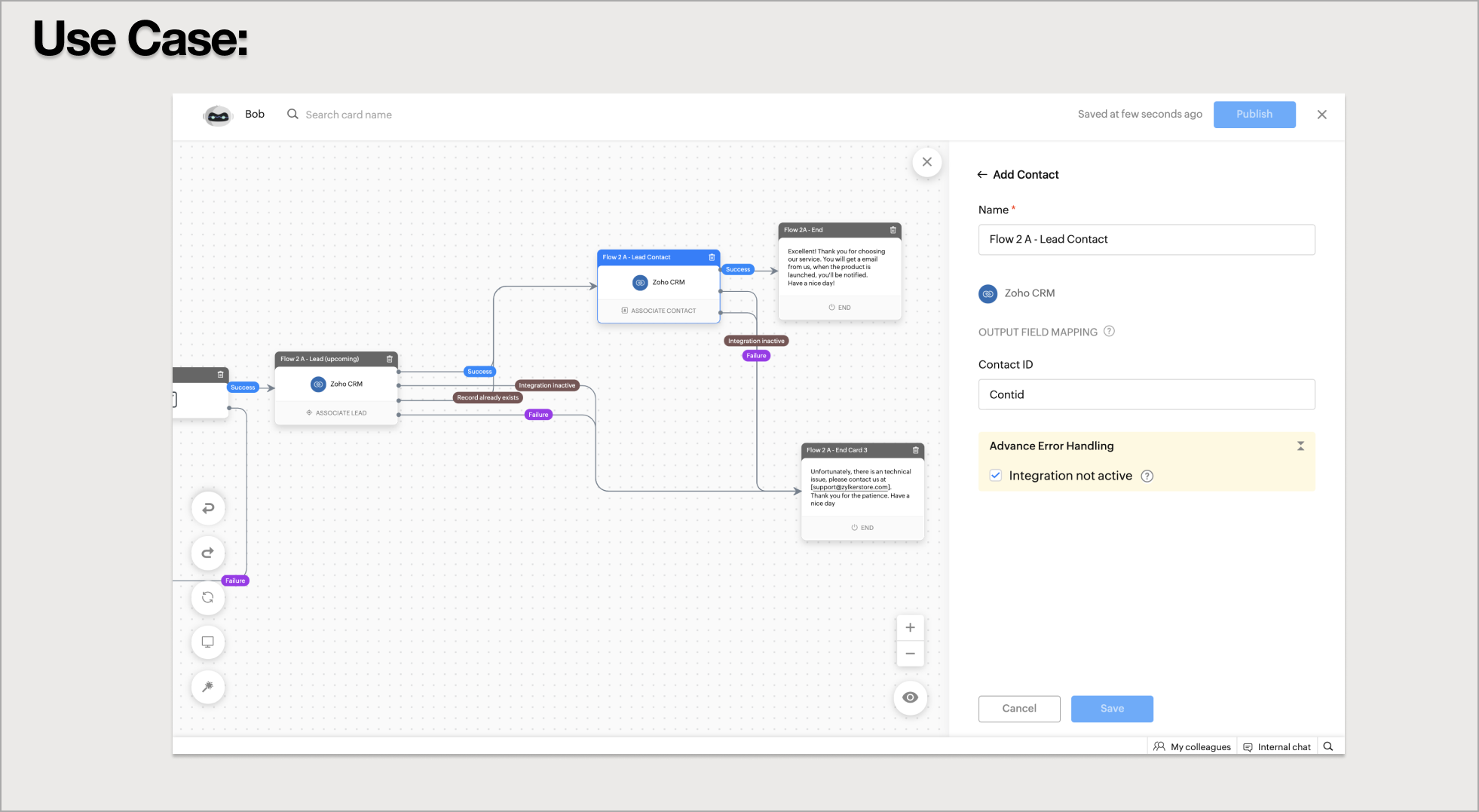 - Inside the Advance Error Handling section, you can handle cases like when the integration is inactive or when the CRM record already exists.