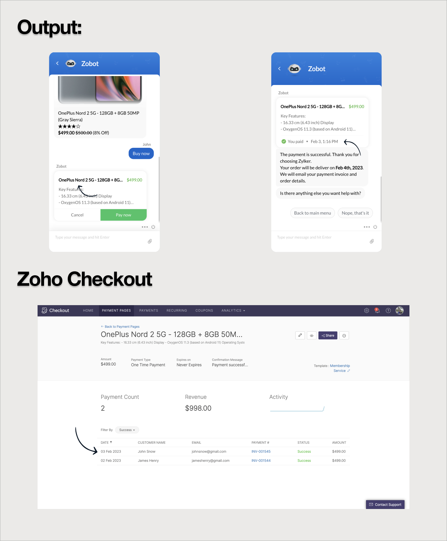 Settings > Integration > Zoho Checkout and add a payment. To know more,