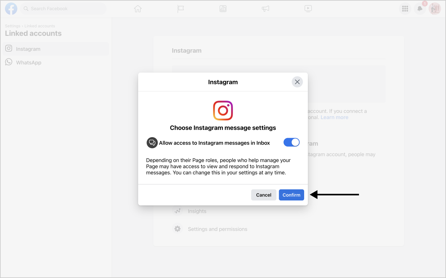The instagram account must be linked with the facebook page. To do that, follow these steps.