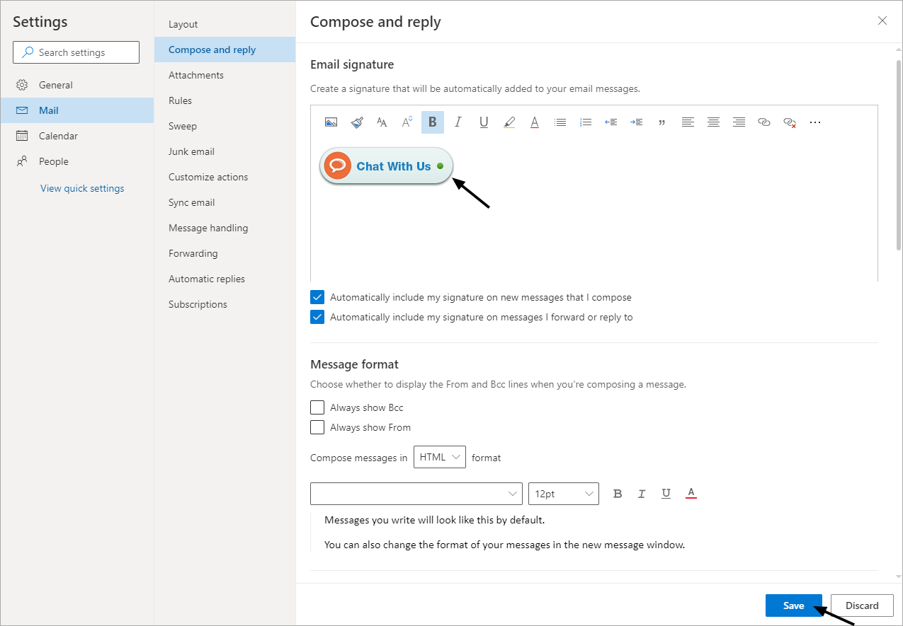 5. Now you can view the chat signature displayed in the body section, click Save