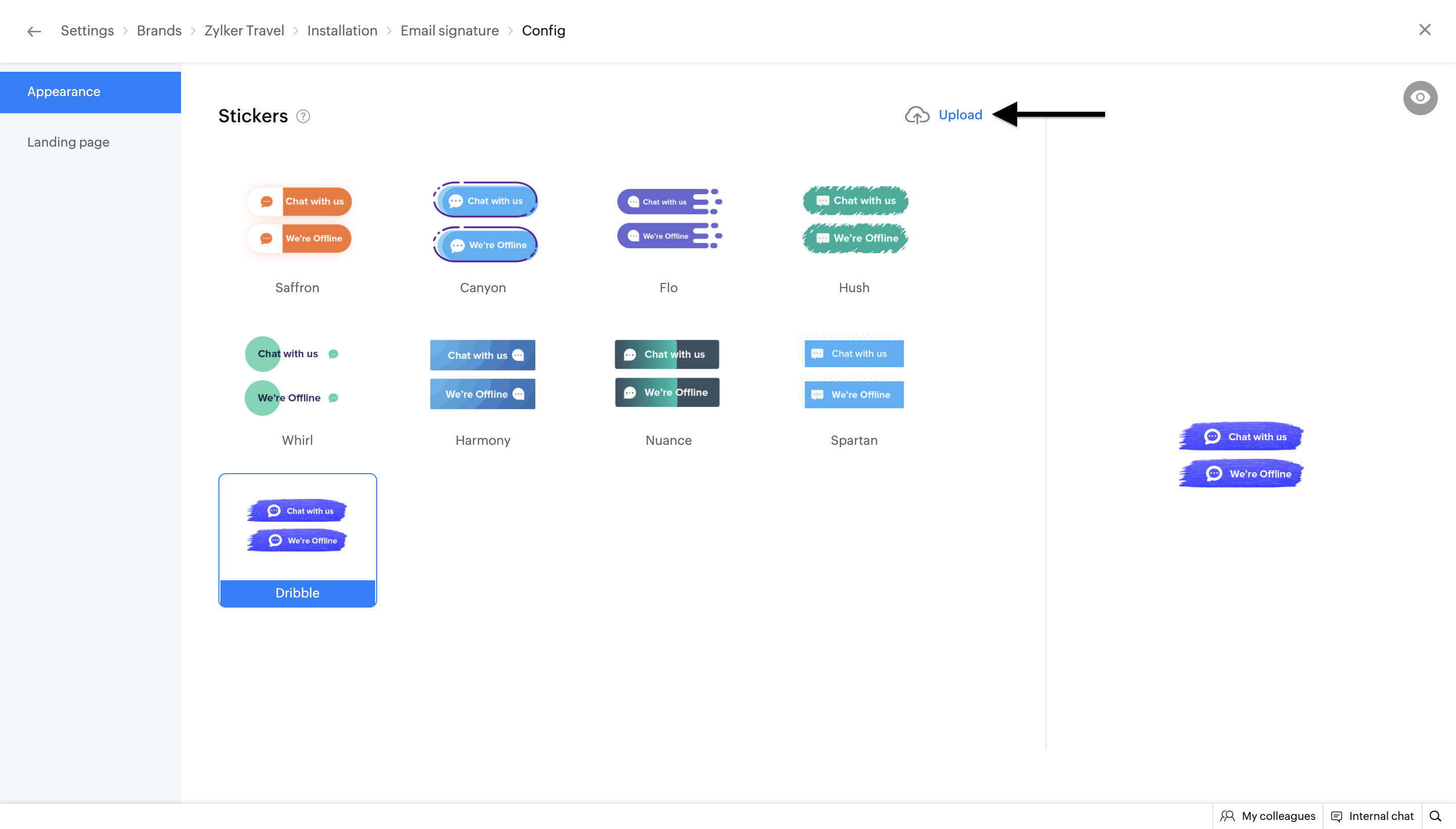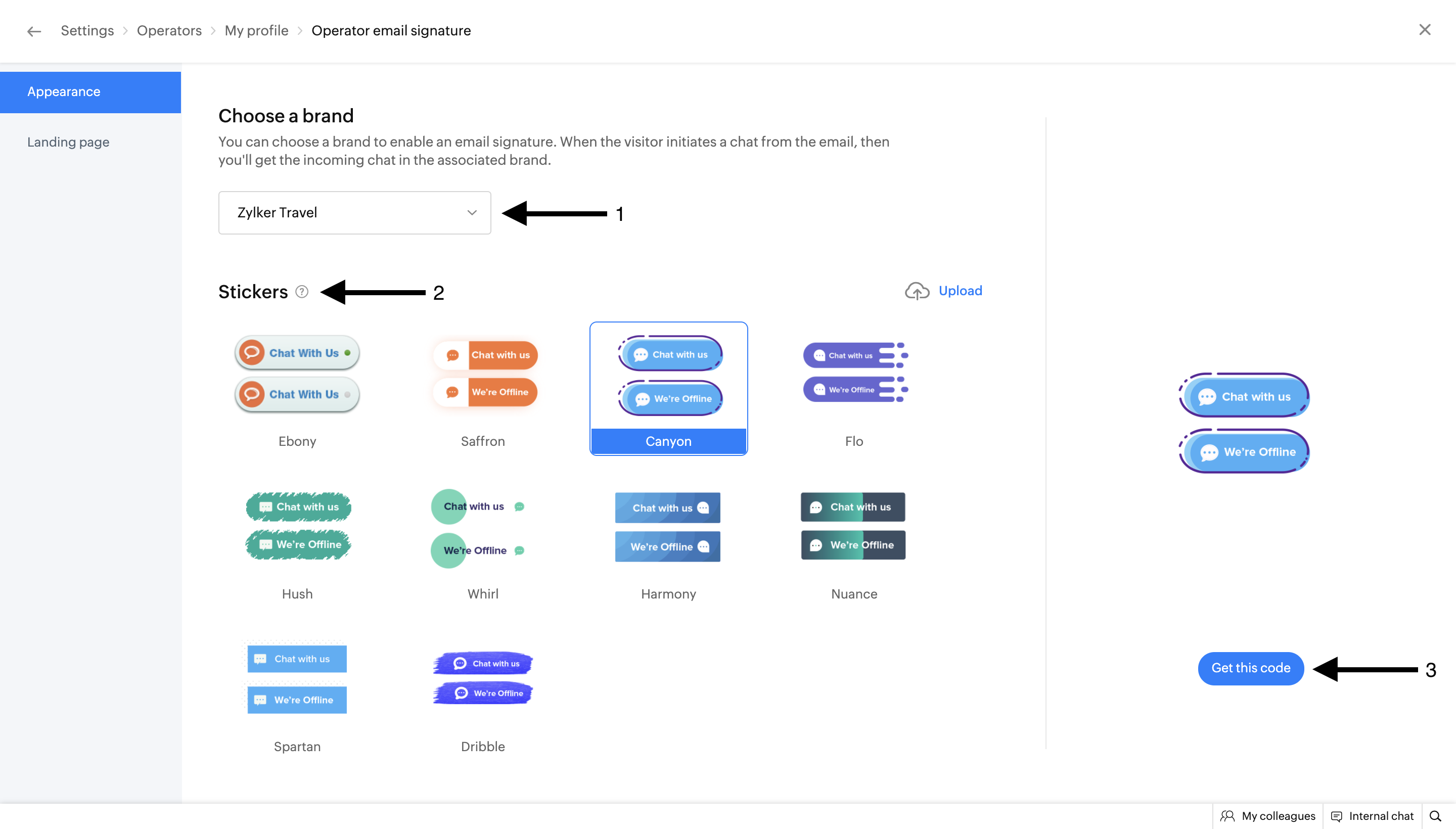 1. Select a pre-defined theme that suits your email template and the chat signature page.