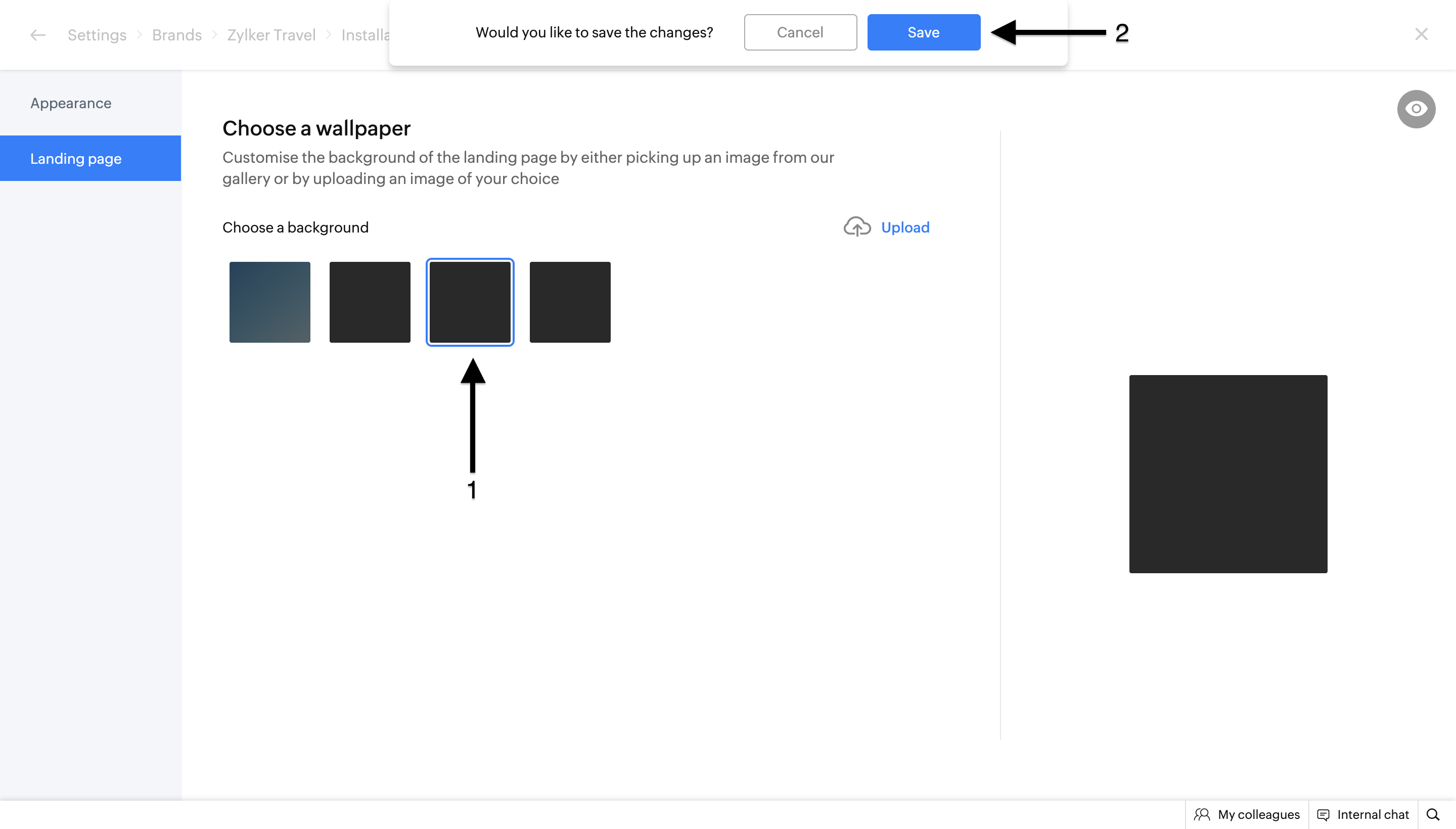 3. Choose a pre-defined signature chat theme or upload your custom theme and click Save.