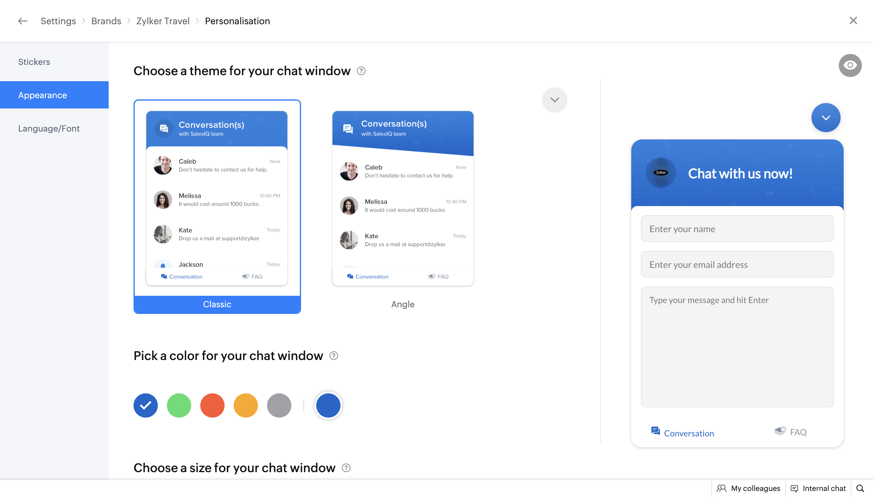 Where do I edit the appearance of the chat window?