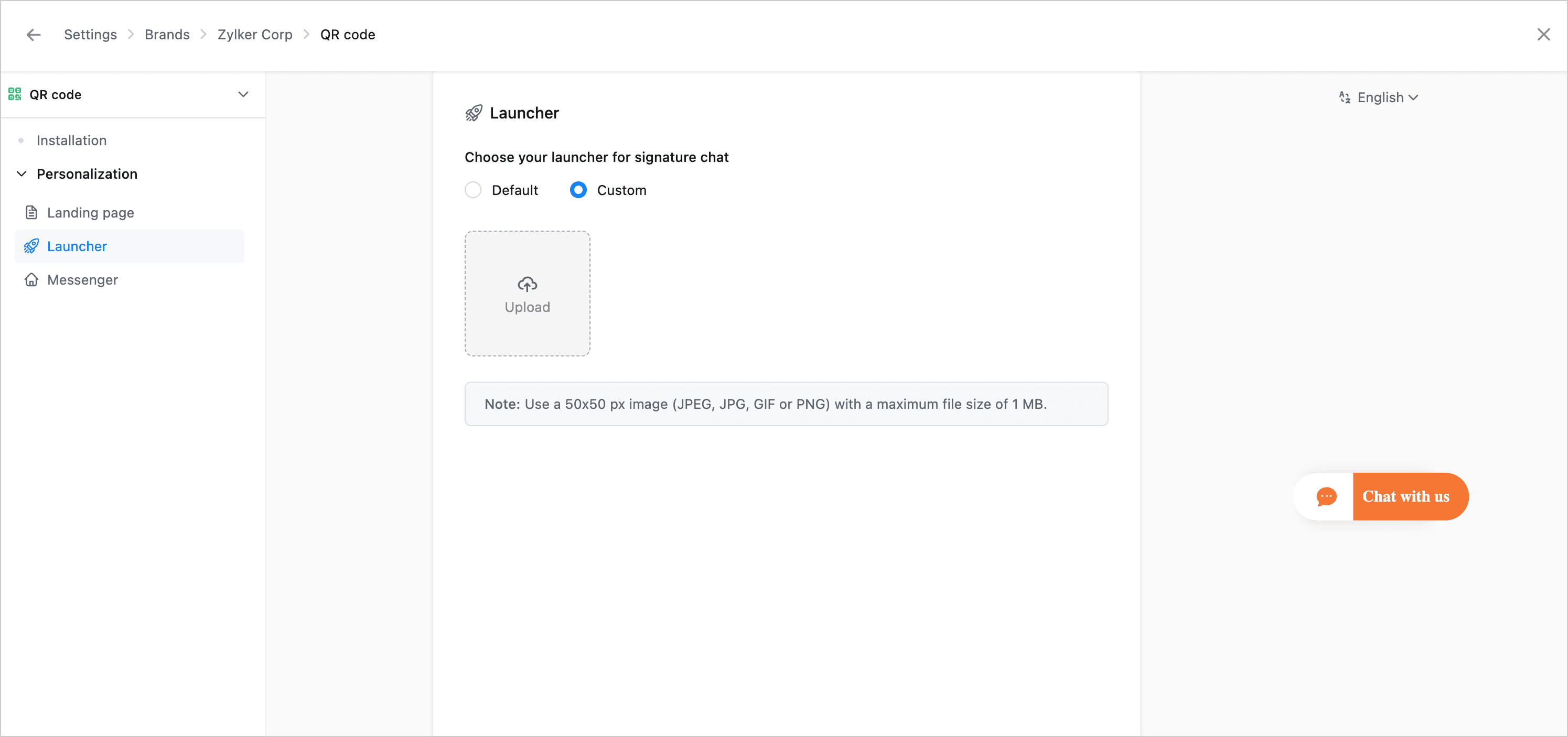 Once uploaded, this custom image replaces the default launcher and will be shown to visitors when they start a chat through the QR code.