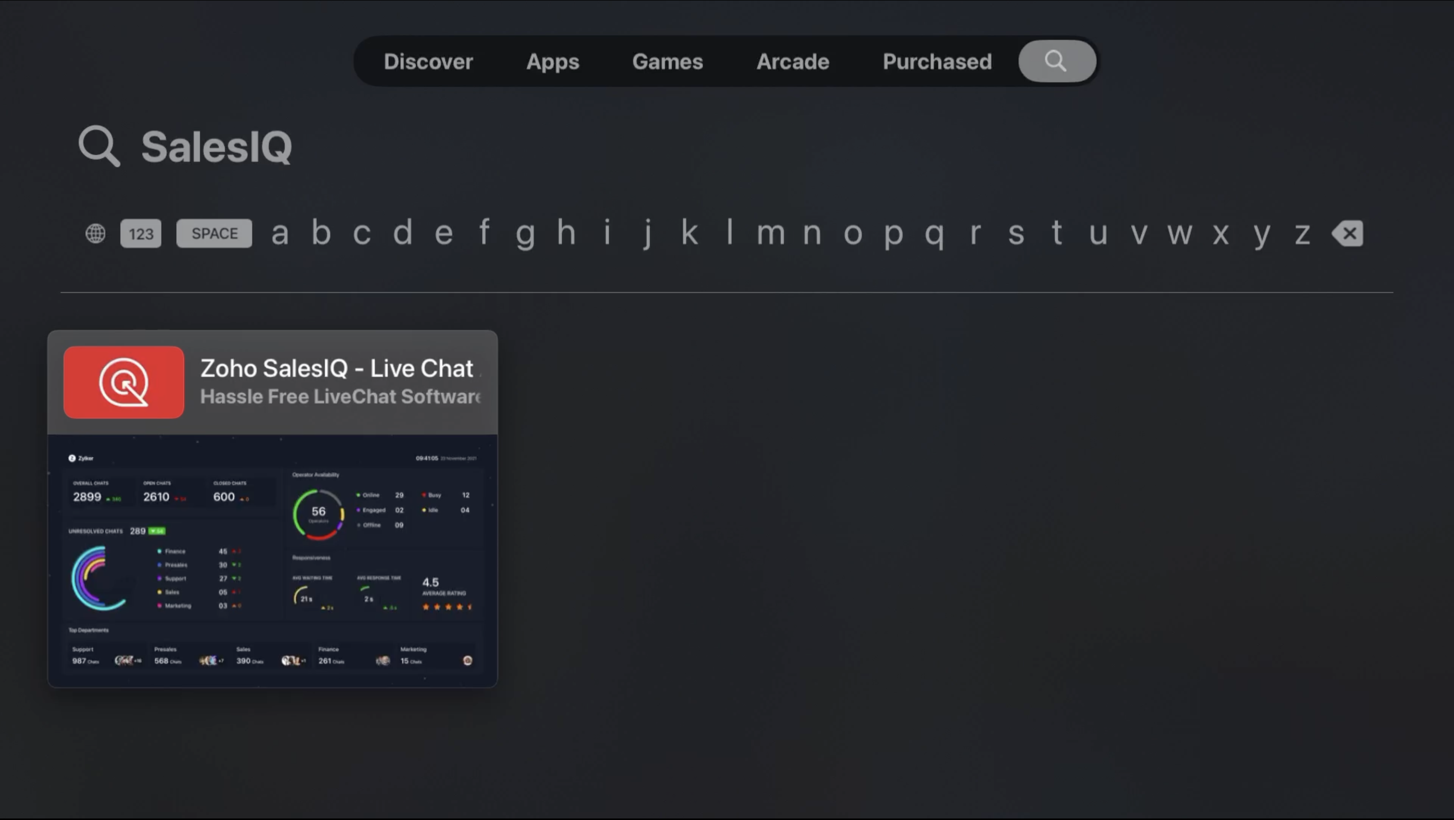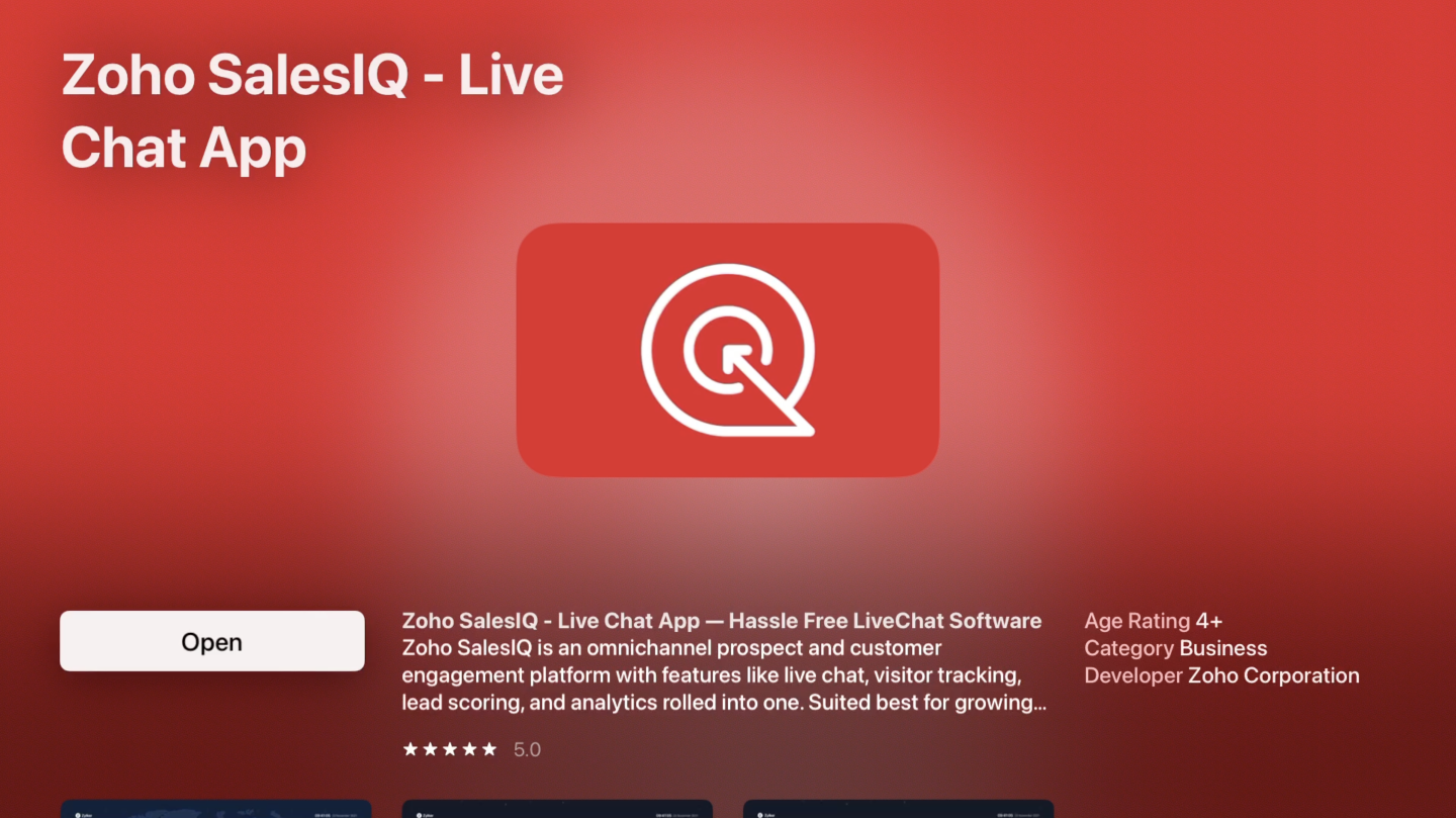 Zoho SalesIQ app for Apple TV