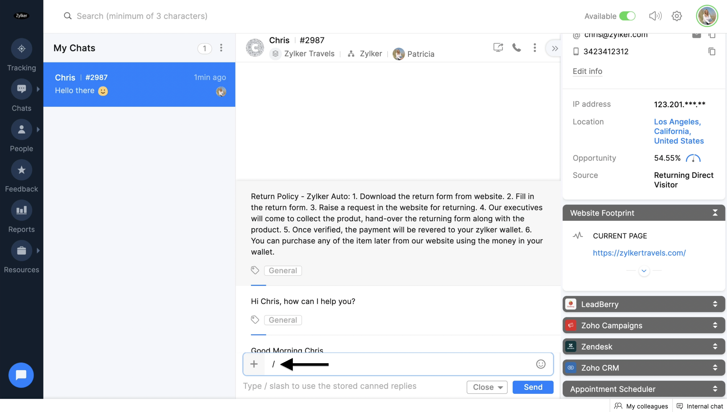 Any support operator in an organization handles a minimum of 50-100 chats on a daily basis and most of these chats have plenty of repeated questions. In cases like these, operators can make use of canned replies, modify them a little, if necessary and send them out to visitors.