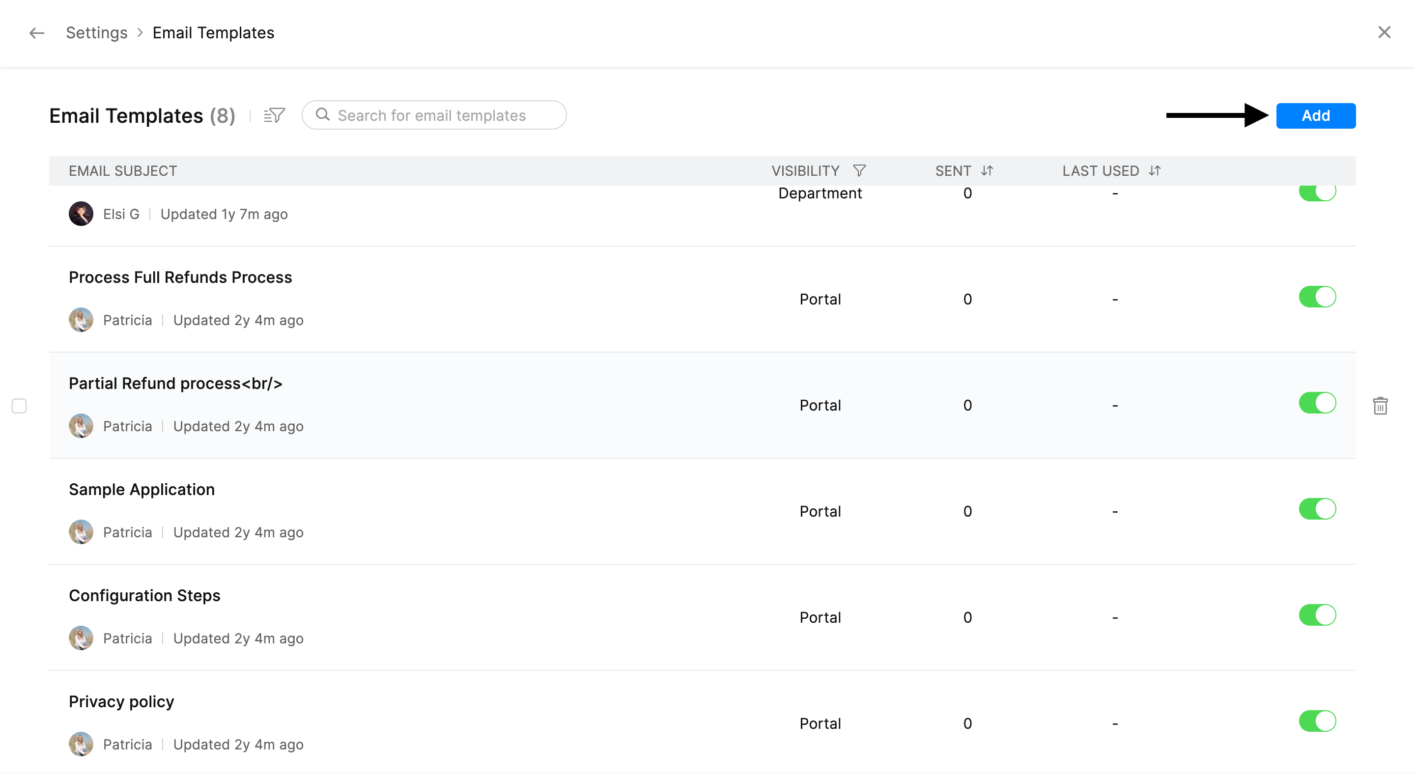 Create email templates to follow up with potential leads. Since email is considered to be a more formal means of communication compared with live chat it is important to create quality templates. Hence, email templates can only be created by Supervisors and Admins.