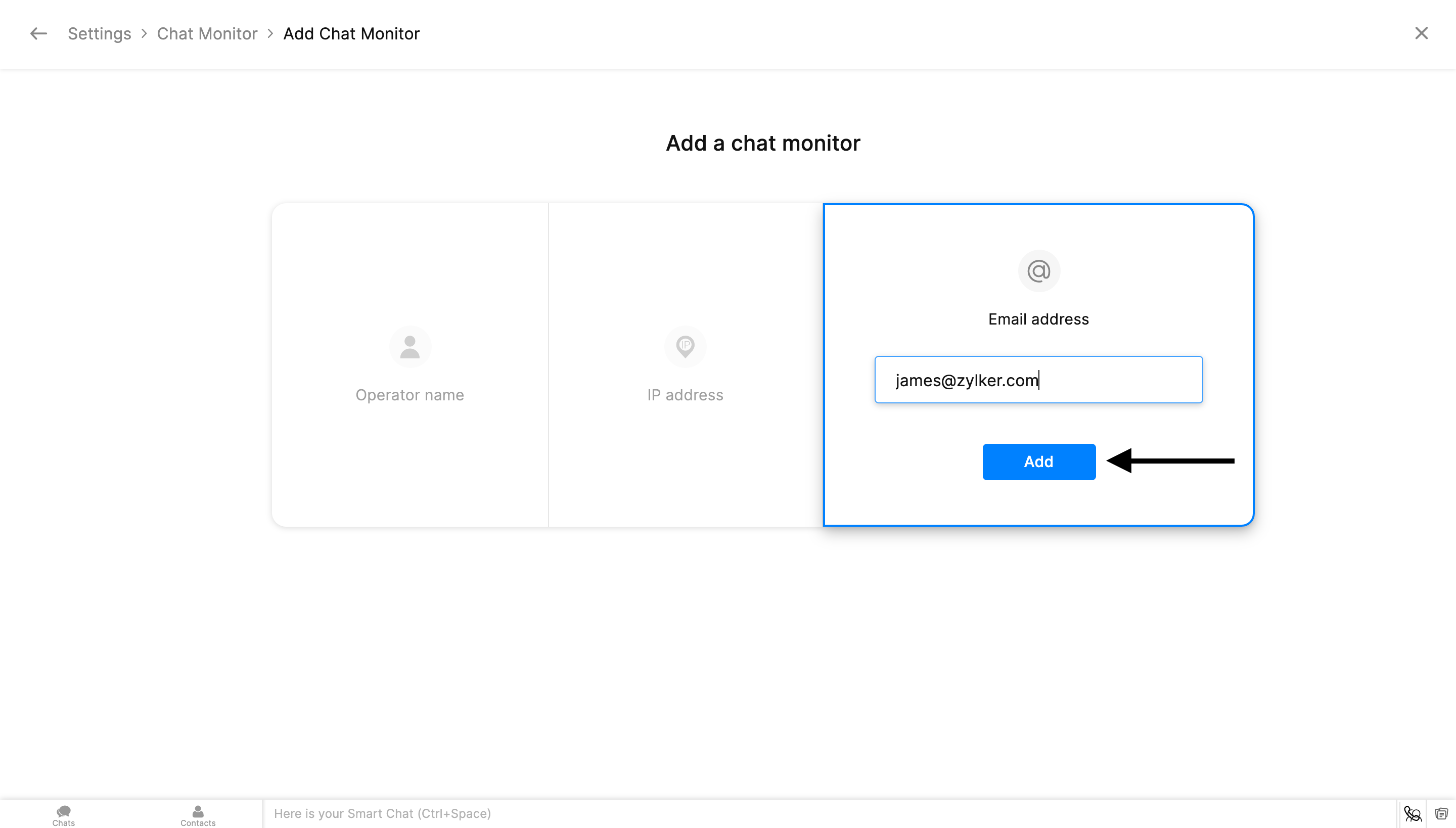 - You can monitor chat based on the operator's name, IP address, or Email address.