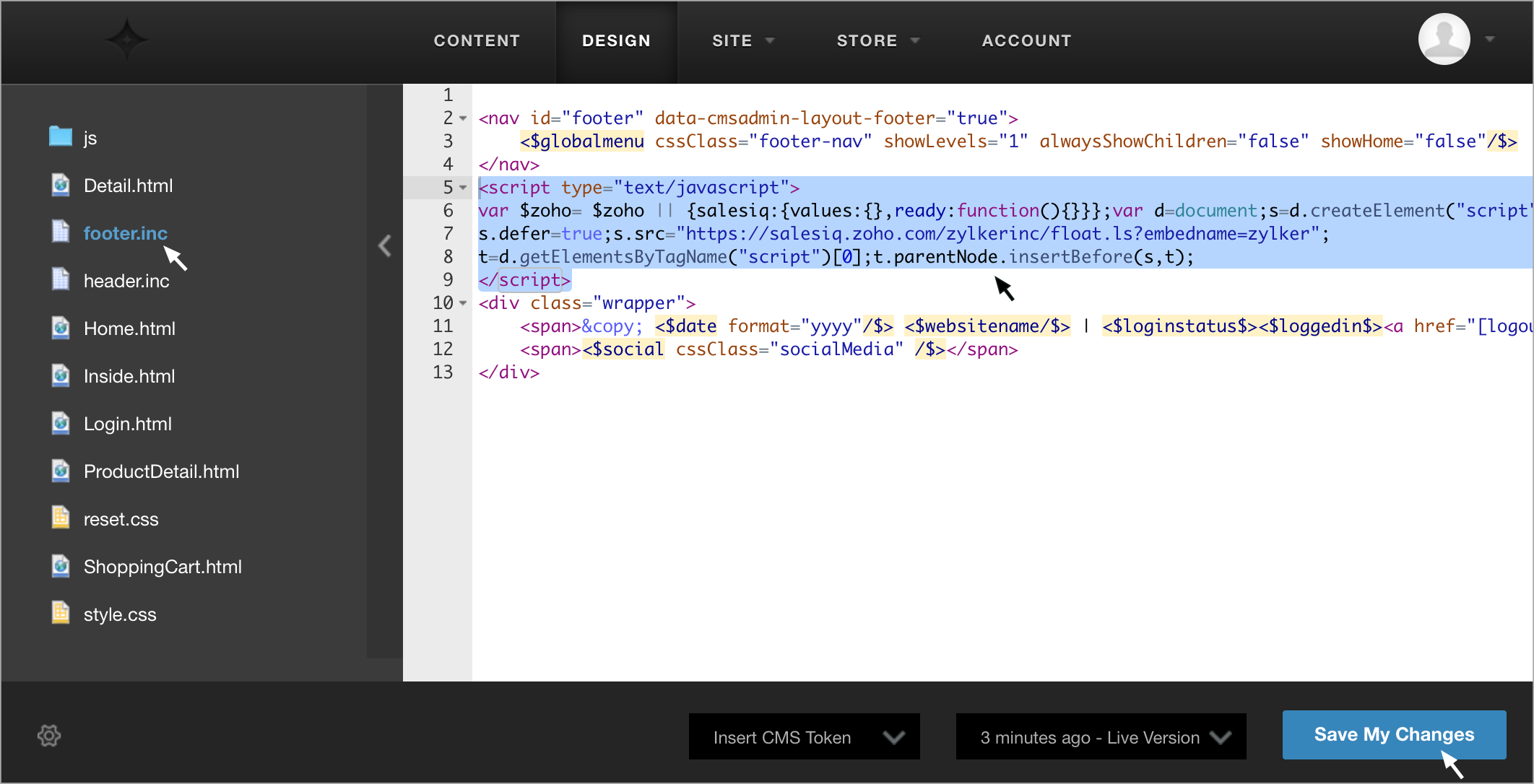 Adding Zoho SalesIQ to your LightCMS