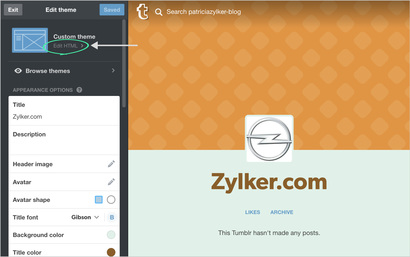 1. On the "Edit theme" screen, click on "Edit HTML".