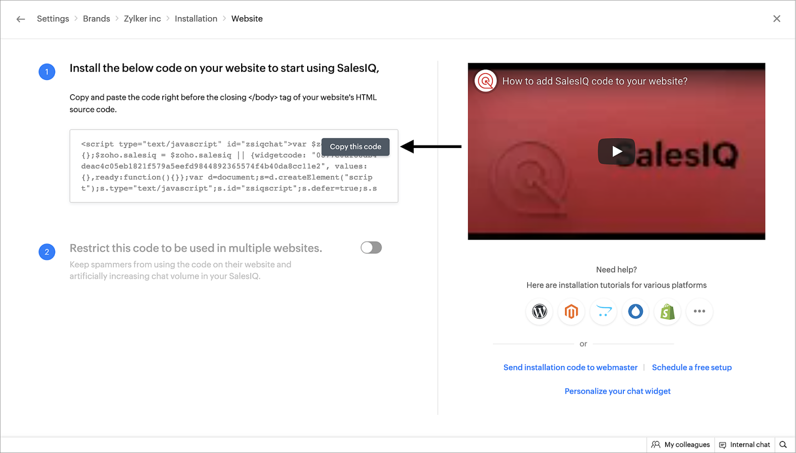 You can also add Zoho SalesIQ to your website by following this procedure.