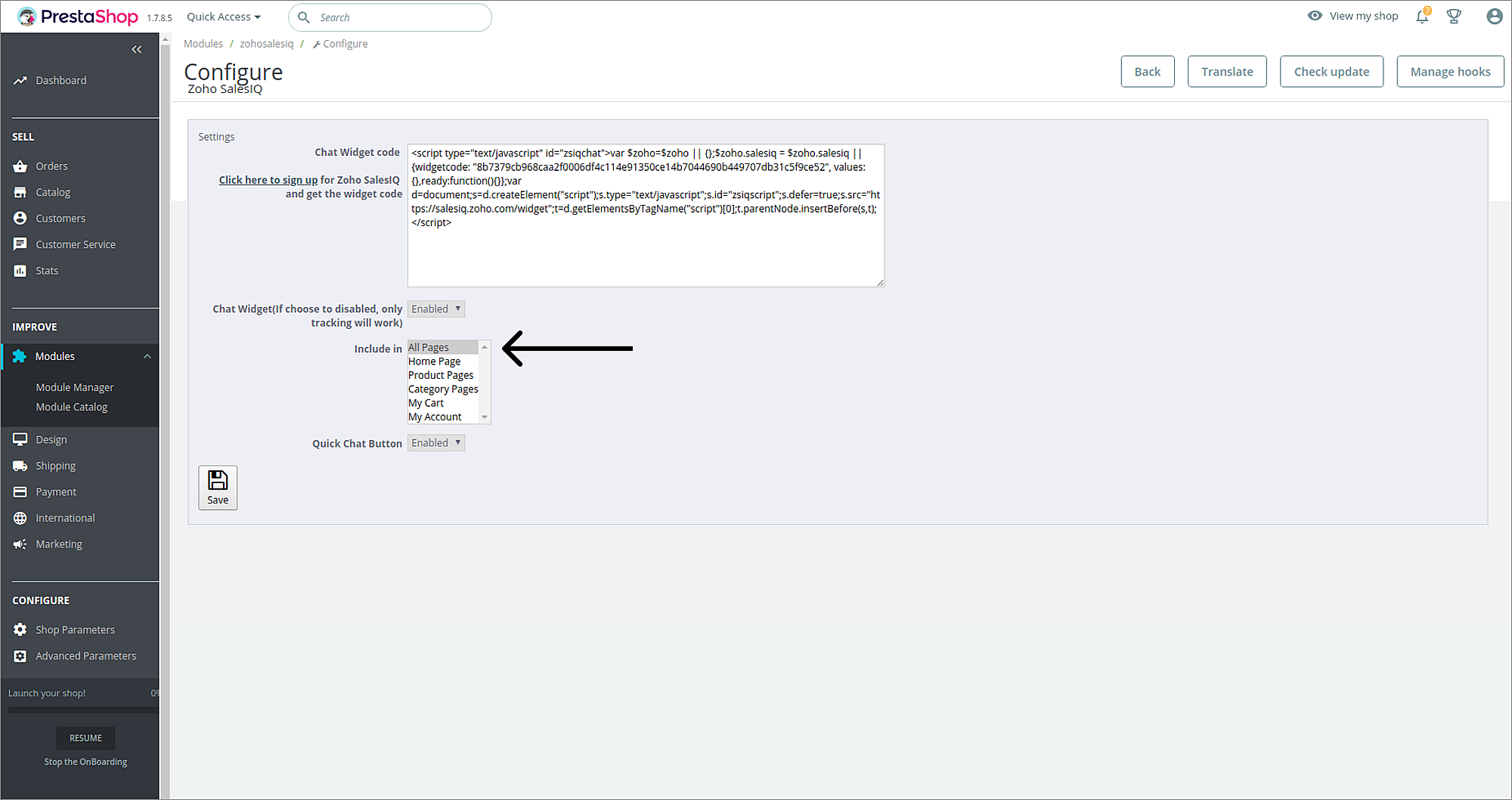 You can now choose the pages on which the SalesIQ widget to be shown using the Include in option